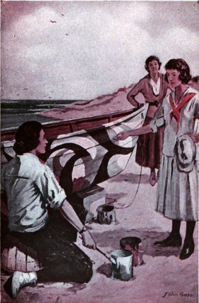 With it was no accompanying card, but a sheet of creamy, rough-edged, masculine note-paper, on which were a series of rather clever pen-sketches: overalled girls wielding rake, hoe, and sprayer upon a sea-girt hill; on the next page, a youth steering a blind horse between reefs of lumber, then with his back bent under a ponderous ship’s rib--a girl defying him--lastly, that girl upright in a dory that might have escaped from some boat-bedlam, signaling to Coast Guards.