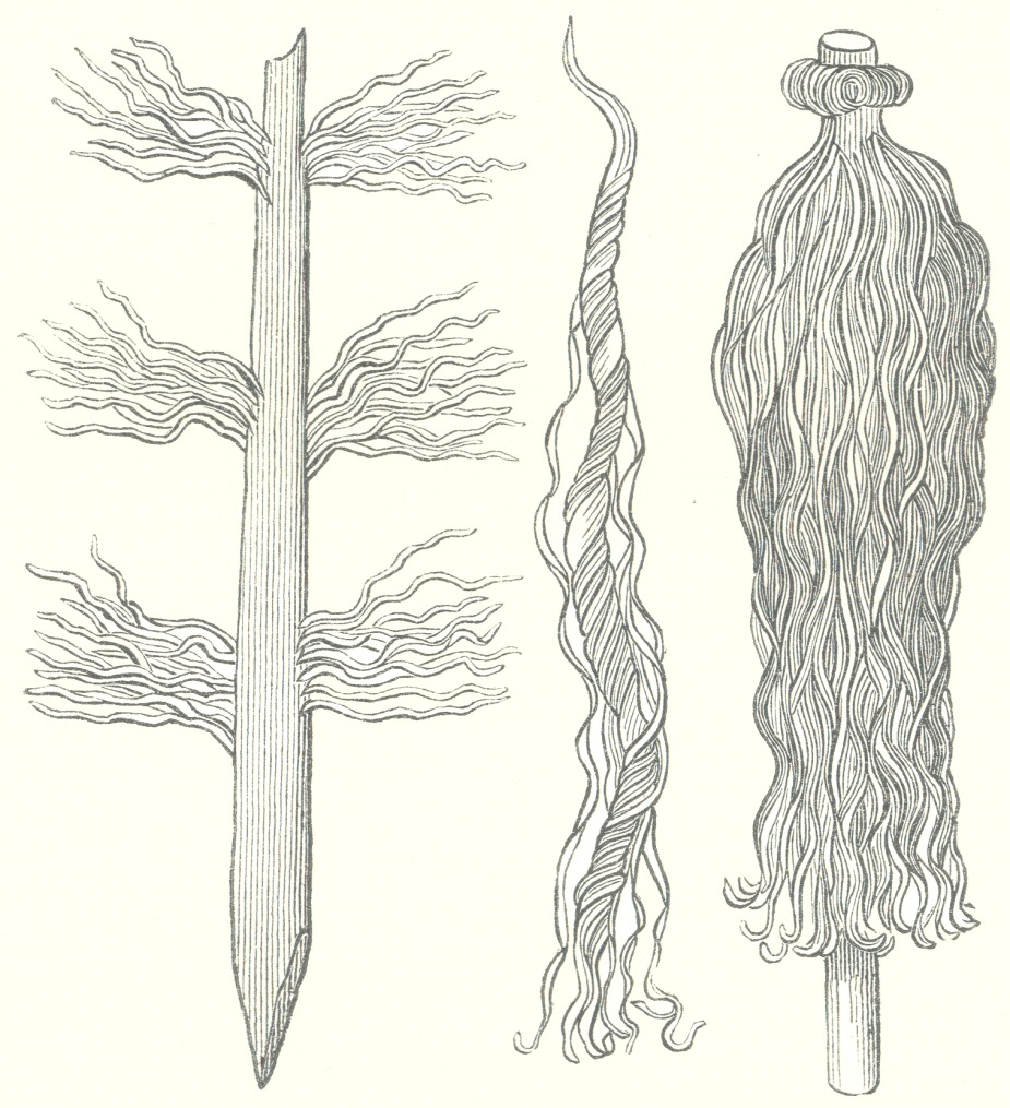[271] I have not been able to obtain from any botanist the name of the tree from the bark of which the thread is made, but suppose it to be a species of Tiliaceæ.