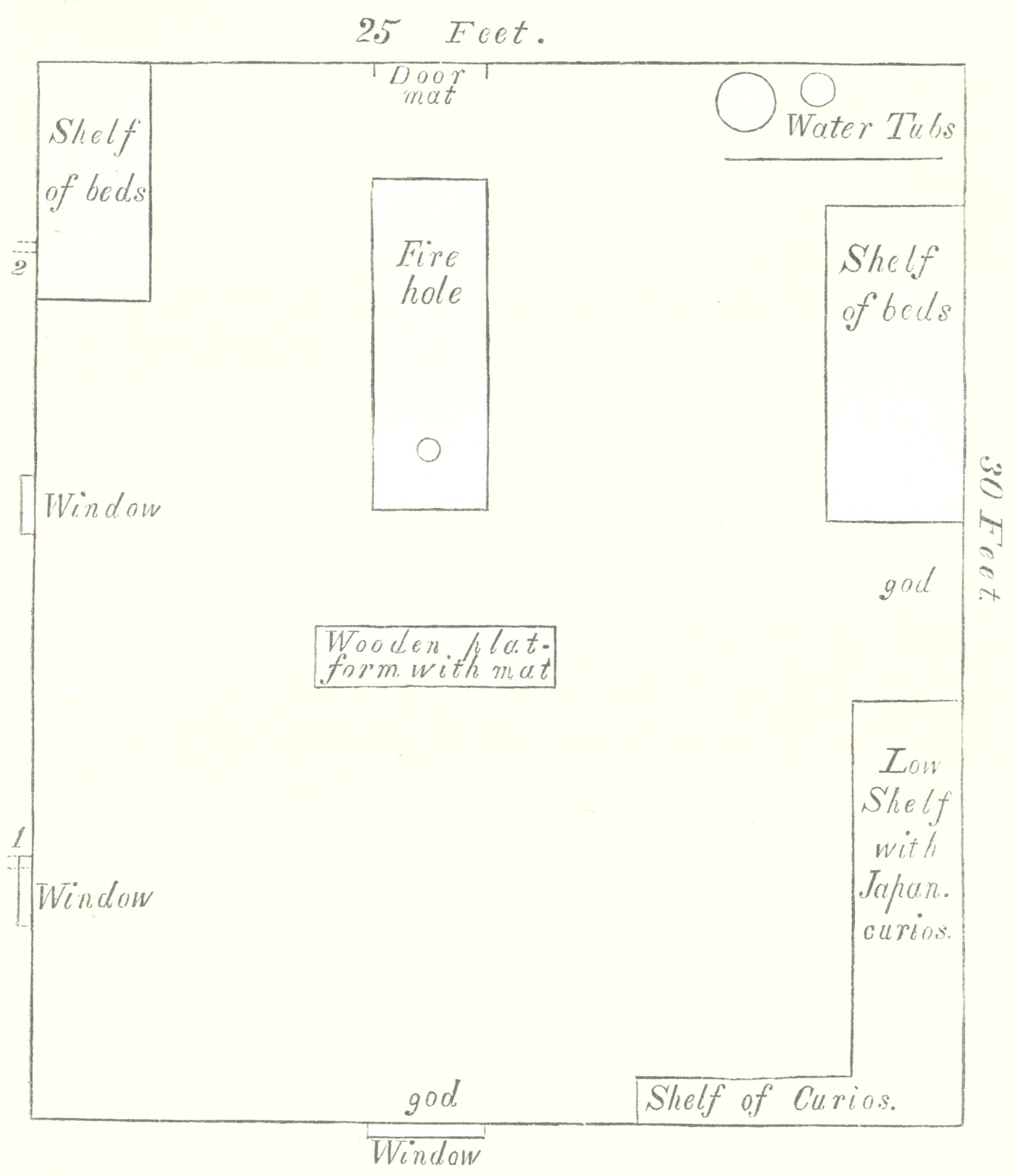 [115b] This hospital is large and well ventilated, but has not as yet succeeded in attracting many in-patients; out-patients, specially sufferers from ophthalmia, are very numerous. The Japanese chief physician regards the great prevalence of the malady in this neighbourhood as the result of damp, the reflection of the sun’s rays from sand and snow, inadequate ventilation and charcoal fumes.
