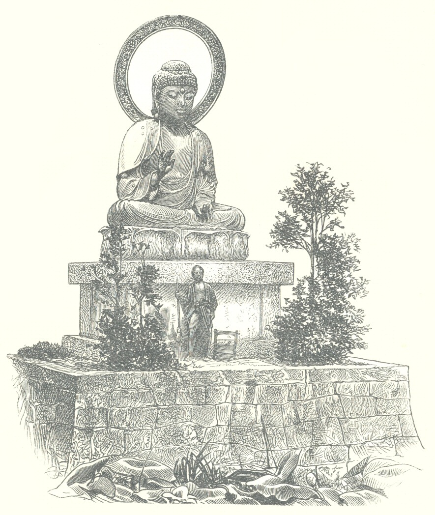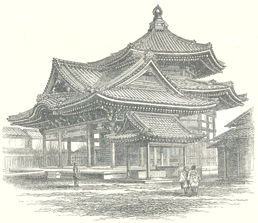 [27] I visited this temple alone many times afterwards, and each visit deepened the interest of my first impressions. There is always enough of change and novelty to prevent the interest from flagging, and the mild, but profoundly superstitious, form of heathenism which prevails in Japan is nowhere better represented.