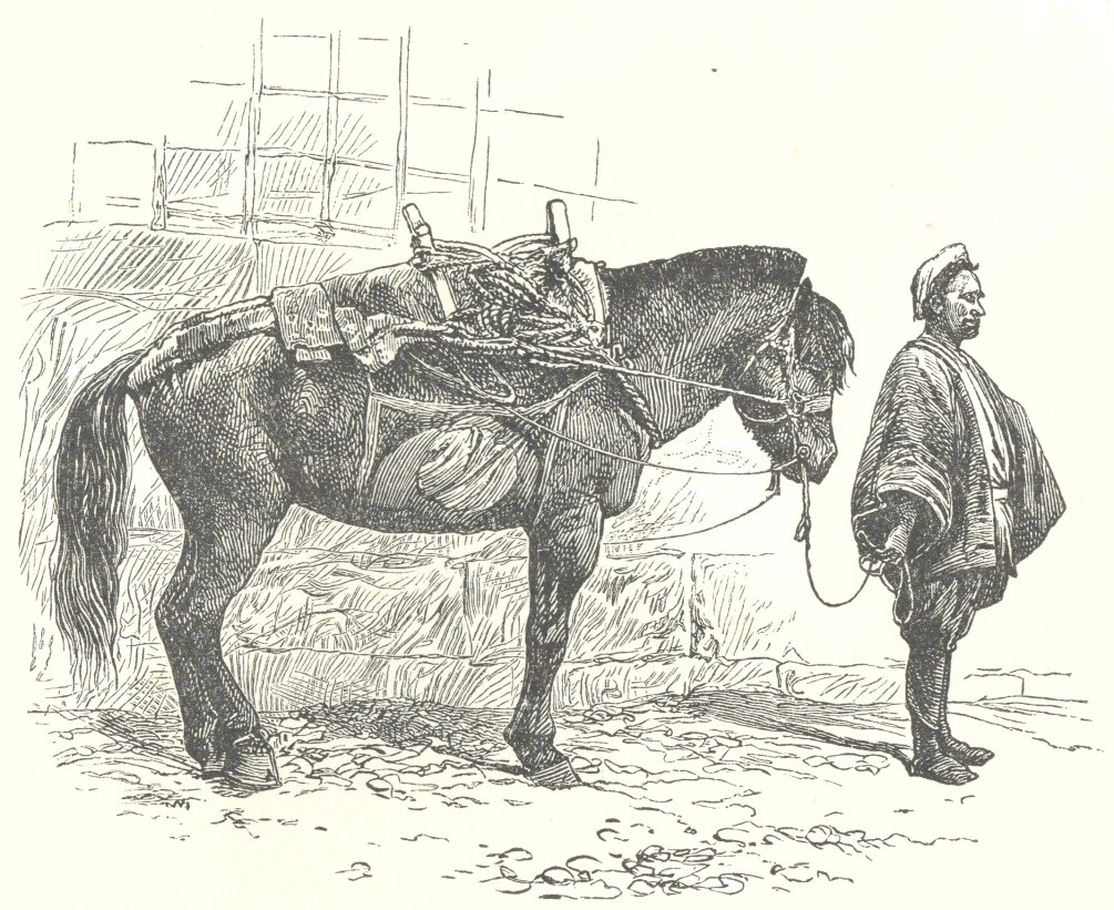 A Japanese Pack-Horse and Pack-Saddle—Yadoya and Attendant—A Native Watering-Place—The Sulphur Baths—A “Squeeze” |