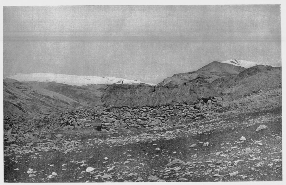 Fig. 7—Crossing the highest pass (Chuquito) in the Cordillera Vilcapampa, 14,500 feet (4,420 m.). Grazing is here carried on up to the snowline.