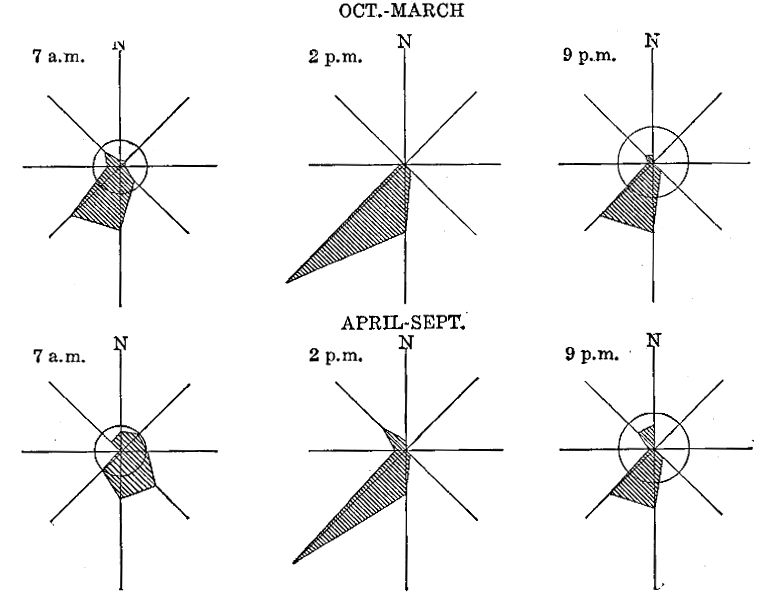 [40] See Meteorologische Zeitschrift, Vol. 5, p. 195, 1888. Also cited by J. Hann in Handbuch der Climatologie, Vol. 2, Stuttgart, 1897; W. Sievers, Süd und Mittelamerika, Leipzig and Vienna, 1914, p. 334.