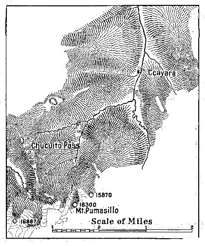 My division of the Expedition undertook to make a contour map of the two-hundred-mile stretch of mountain country between Abancay and the Pacific coast, and a great deal of detailed geographic and physiographic work had to be sacrificed to insure the completion of the survey. Camp sites, forage, water, and, above all, strong beasts for the topographer’s difficult and excessively lofty stations brought daily problems that were always serious and sometimes critical. I was so deeply interested in the progress of the topographic map that whenever it came to a choice of plans the map and not the geography was first considered. The effect upon my work was to distribute it with little regard to the demands of the problems, but I cannot regret this in view of the great value of the maps. Mr. Kai Hendriksen did splendid work in putting through two hundred miles of plane-tabling in two months under conditions of extreme difficulty. Many of his triangulation stations ranged in elevation from 14,000 to nearly 18,000 feet, and the cold and storms—especially the hailstorms of mid-afternoon—were at times most severe.