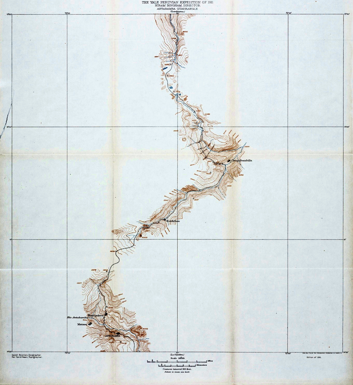 It is difficult to express the gratitude I feel toward Professor Hiram Bingham, Director of the Expedition, first for the executive care he displayed in the organization of the expedition’s plans, which left the various members largely care-free, and second, for generously supplying the time of various assistants in the preparation of results. I have enjoyed so many facilities for the completion of the work that at least a year’s time has been saved thereby. Professor Bingham’s enthusiasm for pioneer field work was in the highest degree stimulating to every member of the party. Furthermore, it led to a determination to complete at all hazards the original plans.