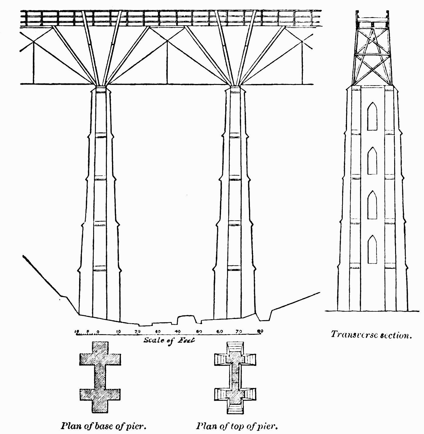 Origin of the Undertaking—The First Competition, November 1829—Description of Mr. Brunel’s Plans—Mr. Telford’s Decision as Umpire—Mr. Telford’s Design—The Second Competition—Mr. Brunel appointed Engineer, March 1831—Commencement of the Works, August 1836—Description of the Design—Abandonment of the Works, 1853—Formation of a New Company and Completion of the Bridge, 1864—Note: The Hungerford Suspension Bridge | 46 |