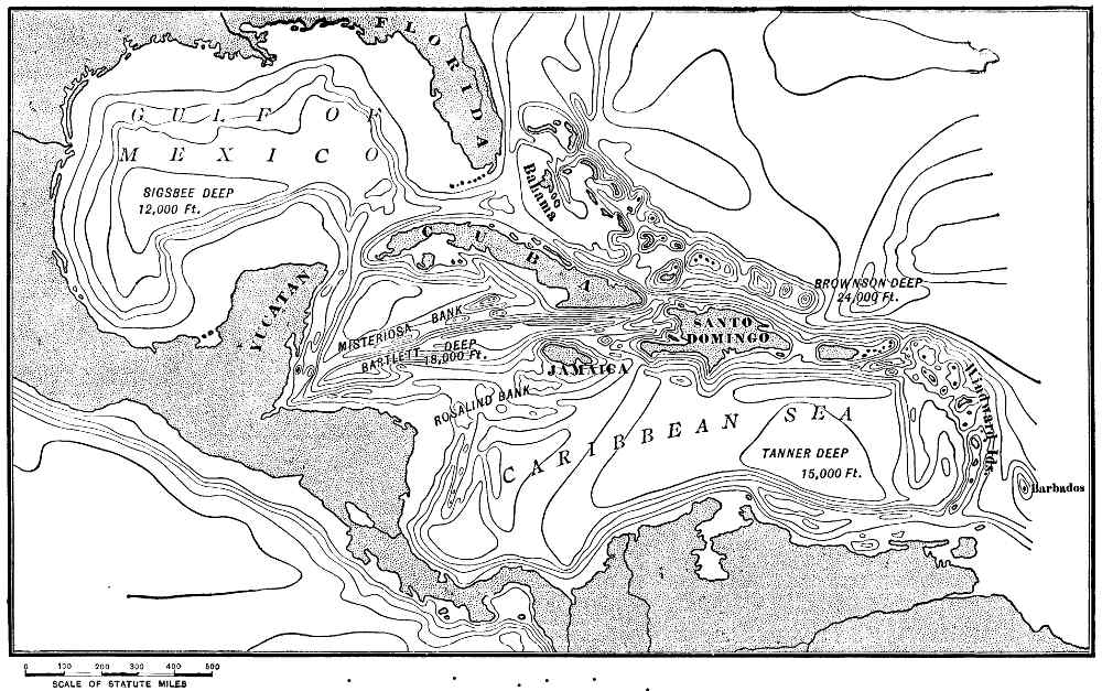 | 3. | Map of Gulf of Mexico and the Caribbean region, showing topography of the sea-floor | 17 |