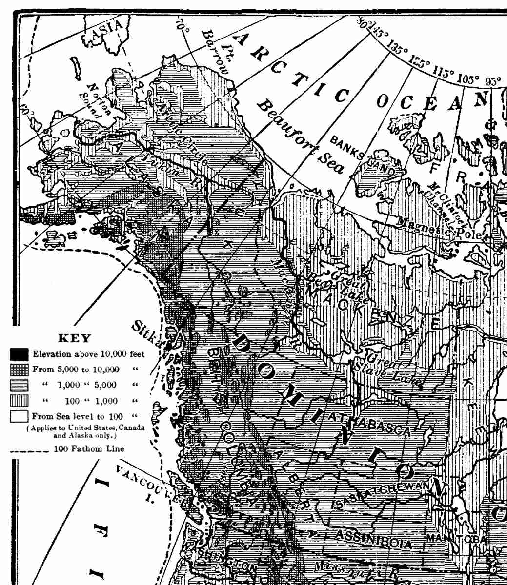 Transcriber's Note: Blank pages have been deleted. Some illustrations have been moved. We have rendered consistent on a per-word-pair basis the hyphenation or spacing of such pairs when repeated in the same grammatical context. Detected publisher's errors were corrected as listed below: Page Correction 5 both calcareous and silicious[siliceous] 12 Carribbean[Caribbean] 18 Gulf of Mexico and the Carribean[Caribbean] region: 60 Taking the better-known[better known] portions of North America 72 and are hard and resistent[resistant] 103 "Land oh[ho]!" is no more thrilling 105 where preciptation[precipitation] is abundant 126 Bamf[Banff], Lake Louise, Glacier House, 131 related to this phase of volcanism[vulcanism] is the 139 in Nevada and southestern[southeastern] California 150 hard rocks thus exposed [were] rounded 176 to take a more criticial[critical] view 179 wind blows with remarkable unformity[uniformity] 203 are cultivated with moderate successs[success]. 263 the terra calente[caliente] of Mexico 271 from civilization is[are] great 281 skunks belong to the family Mustalidæ[Mustelidæ] 290 and the pecular[peculiar] hoazin, represented 363 the plating[plaiting] of baskets and the art 430 Sub-soil[Subsoil], in Alaska, 68. 431 Mephities[Mephitis] mephitica, 280. 431 Micquelon[Miquelon], retained by France, 419. 433 St. Francois[François] Mountains, Mo., height of, 433 Solóvieff[Solóvioff], I. M., reference to, 374 433 St. Helena[Helens], Mt., Wash., height of, 156. 434 Wapati[Wapiti], brief account of, 270-271.