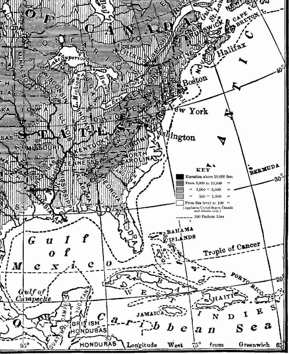 | Coastal plains and plateaus—The Atlantic mountains—The continental basin—The Pacific mountains—The Antillean mountains. | ||