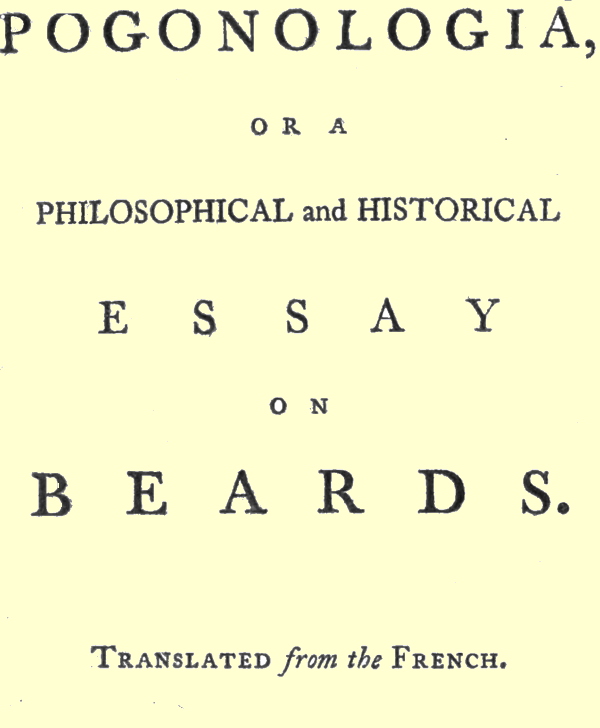 It must appear a strange paradox, perfectly shocking for crazy old beaus, for priests whose beards are always shaved close, in short, for all those that compose the effeminate part of the human species, to hear any one maintain, that a long beard becomes a man’s dignity, and that it is beneficial to health and good morals; his ideas must be very different from those of the present age. This however is what I have presumed to do. But whether the design of this work be serious or ironical, it has at least the appearance of novelty; and that’s a great deal in this age.
