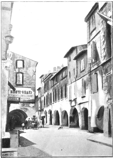 Going down a street that leads northward from the Promenade, we pass the Mairie, a quaint old building from whose balcony floats, not the Tarasque, but the tricolor, and by whose doorway are posted notices of coming bull-fights, for Tarascon is still keen on its ancient sport despite the restrictive legislation. Near by is the public market, and the whole district swarms with dogs of every breed. We 189 peep into the church of St. Martha, which is no bad example of the Pointed Gothic and occupies the site of an old Roman Temple. One of the kings of Provence is buried here, but more interesting is the tomb of the saint to whom the church is dedicated.
