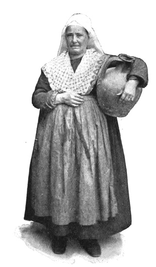In the distance the sound of music is heard, and after a time at the far end of the road the head of the procession is seen moving towards us at a pace as much slower than a funeral as that is slower than a horse race. First comes the beadle, or church officer attached to the cathedral, whose blue or red uniform, with cocked hat, knee breeches, white hose and buckled shoes, remind one of the dress of our soldiers in the seventeenth century, a get-up very similar to that of the Swiss Guard at the Vatican, these beadles being, indeed, generally known as the "Swiss," though they are loutish and ignorant fellows, with as much regard for religion as the chucker-out at a roaring London tavern. But for all that, the Swiss makes a mighty 202 picturesque figure at the head of the procession, his sword hanging at his hip, and a long mace carried in his hand as he steps out slowly and endeavours to combine dignity with scowls at the children who follow him, the little girls in their white muslin dresses, made for their first communion, and the little boys in the sort of midshipman's suit universally worn by French lads at the time of their confirmation, a white armlet being donned on this occasion and a rosary tied around it. Following the children, who carry banners with various religious devices, come bands of music and different groups of men and women, who also march under certain banners that indicate their membership of some brotherhood or sisterhood.