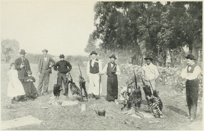 The second of my travelling companions was a typical Argentine of the town-hating variety. There was nothing of the gaucho in his blood, and I judged him to be entirely Spanish in origin, of that fair type[442] which could pass for Anglo-Saxon, but he was a lover of the open spaces and the wild life of the Camp. Wiry and slim, with blue, inquiring eyes, he had travelled far, and was familiar with many parts of North America and Europe, although he had just completed some five years in the wilds of Paraguay and the Gran Chaco, where I believe the lovers of primitive life can have more than their fill. He recounted many of his experiences among the wild Indians of the Chaco, and showed me numerous photographs he had taken there, with all the pride of a schoolboy. Here was none of your desperadoes of the wild places, though he carried a big enough Browning in his belt and the usual long knife of the gaucho in a sheath over his hip. These accoutrements struck me as strangely unsuited to the man, who, in general appearance and in the quietness of his demeanour, would have seemed far more in place perched on a high stool in a counting house.