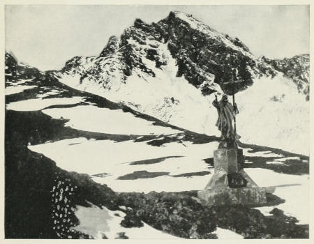 The great statue erected on the Argentine-Chilian frontier to commemorate the settlement of the boundary dispute between the two nations. The Transandine tunnel penetrates the mountain some little distance below this point.