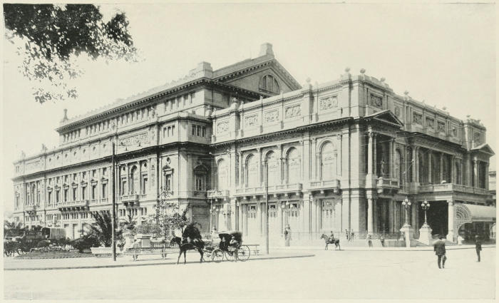 The real old spirit of Carnival is abroad, and the whole thing is conducted with so much good taste and with so little rowdyism that it is easy to see why it attracts such large numbers from Buenos Ayres, where the low class element so abused the liberties of Carnival in past years that it was prohibited, and is observed only to a small extent in some of the suburbs. The use of paper confetti and serpentinas, of which tons must be sold during the festivities, litters the streets and festoons lamp-posts, telephone wires, and window railings with streamers which, in the less accessible places, hang for months afterwards as mournful reminders of the merry time that was; but the municipal authorities show a remarkable celerity in clearing away all their temporary provisions for the festivities. By the beginning of March, Montevideo was its own staid self again, and by the end of that month the short holiday season had utterly passed, the bands at the playas had played their last tunes, the Hotel Pocitos and the Parque Hotel had closed their doors, no gaily-dressed throngs were to be seen on the promenades, and people were beginning to think of their social engagements for the coming winter; for it is in the autumn and winter season that the Montevideans themselves enjoy most their social round, when their theatres are occupied by numerous dramatic and operatic[407] companies from Italy, Spain, and France, when political enthusiasts harangue their audiences, and lecturers give their conferencias on literary and scientific subjects.