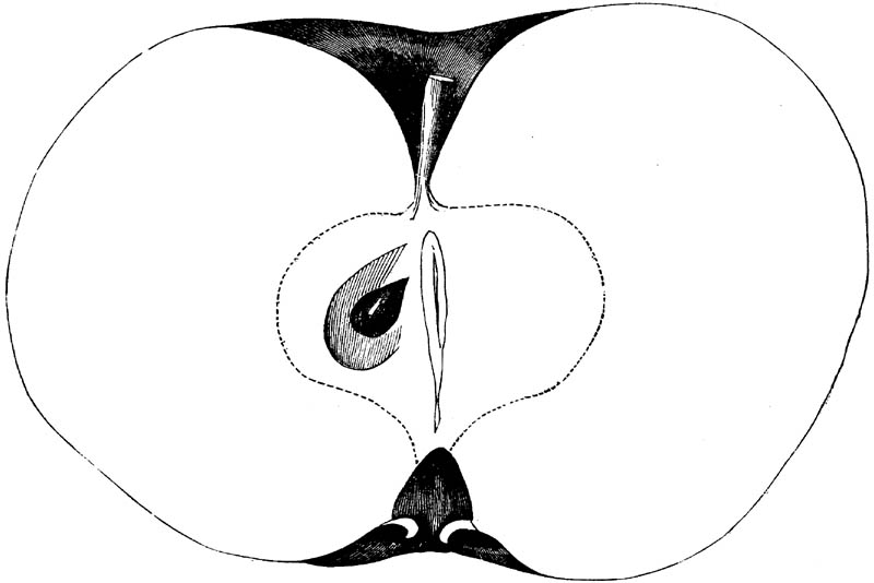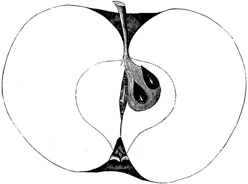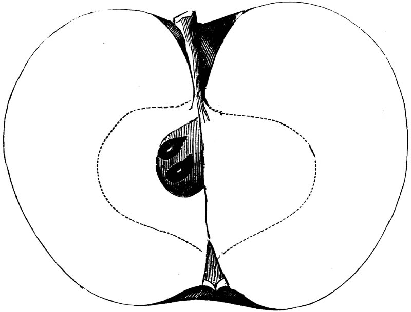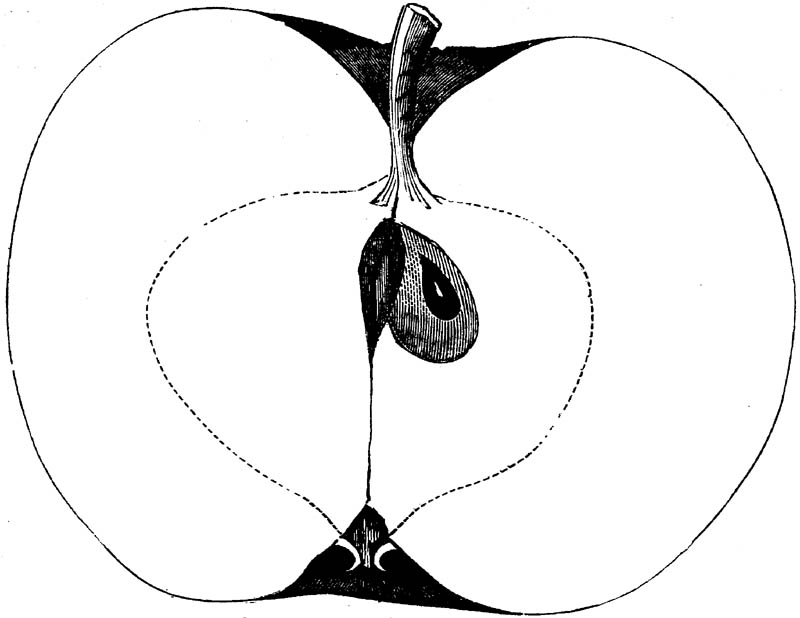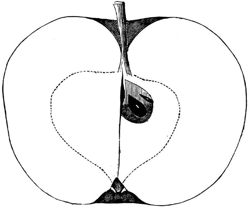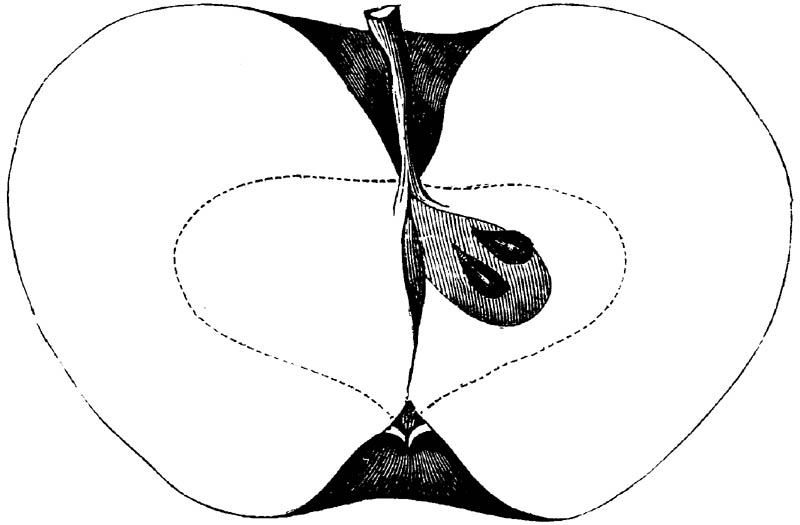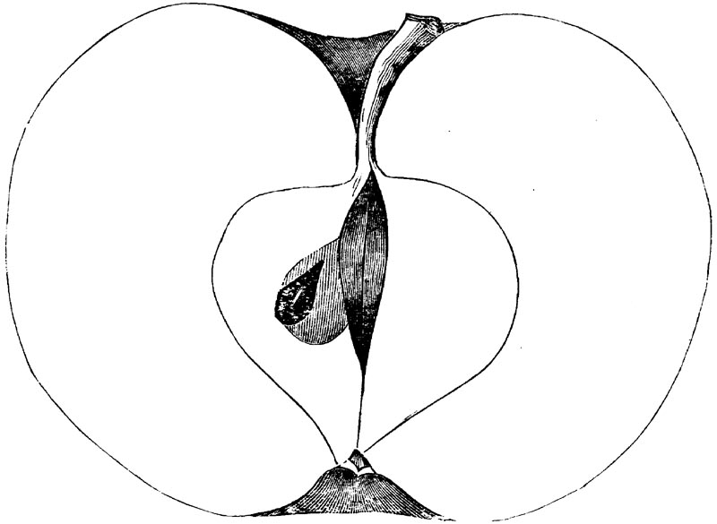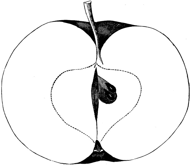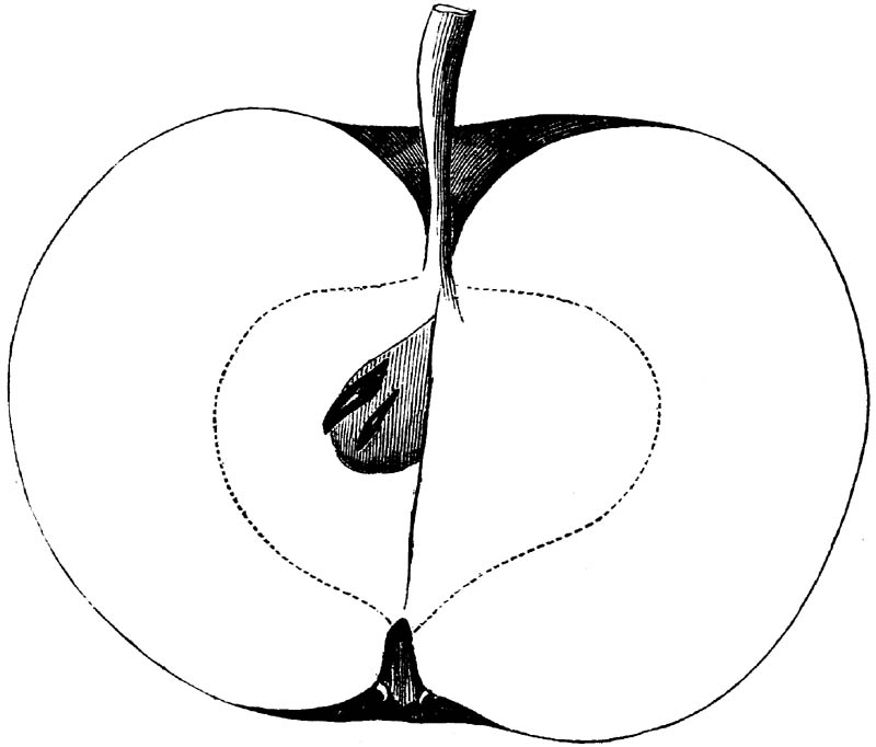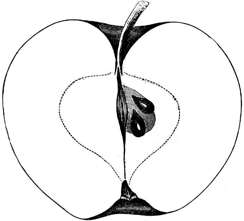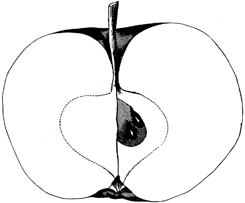 Nor is this class of food desirable for man alone. Fruits of all kinds, but particularly what may be called [18]the large fruits, such as are grown in our orchards, may be profitably cultivated for feeding our domestic animals. Sweet apples have been especially recommended for fattening swine, and when fed to cows they increase the flow of milk, or produce fat according to the condition of these animals. Think of the luxury of eating apple-fed pork! Why, even the strict Rabbi might overcome his prejudices against such swine flesh! And then dream of enjoying the luxury of fresh rich milk, yellow cream, and golden butter, from your winter dairy, instead of the sky-blue fluid, and the pallid, or an anotto-tinted, but insipid butter, resulting from the meager supplies of nutriment contained in dry hay and fibrous, woody cornstalks. Now this is not unreasonable nor ridiculous. Orchards have been planted with a succession of sweet apples that will sustain swine in a state of most perfect health, growing and fattening simultaneously from June to November; and the later varieties may be cheaply preserved for feeding stock of all kinds during the winter, when they will be best prepared by steaming, and may be fed with the greatest advantage. Our farmers do not appreciate the benefits of having green food for their animals during the winter season. Being blessed with that royal grain, the Indian corn, they do not realize the importance of the provision of roots which is so great a feature in British husbandry; but they have yet to learn, and they will learn, that for us, and under our conditions of labor and climate, they can do still better, and produce still greater results with a combination of hay or straw, corn meal and apples, all properly prepared by means of steam or hot water. Besides, such orchards may be advantageously planted in [19]many places where the soil is not adapted to the production of grain.—The reader is referred to the chapter on select lists in another part of this volume, in which an attempt will be made to present the reader with the opinions of the best pomologists of various parts of the country.