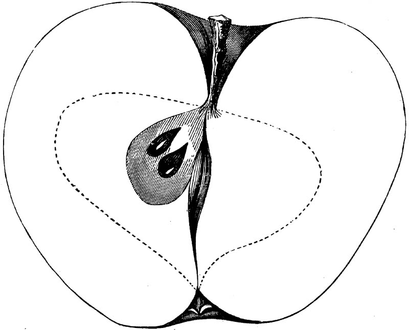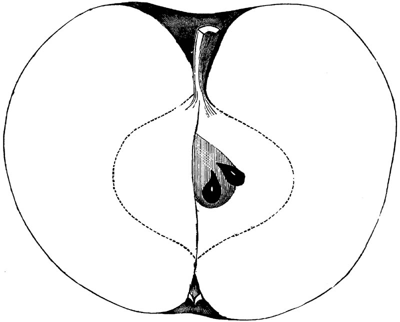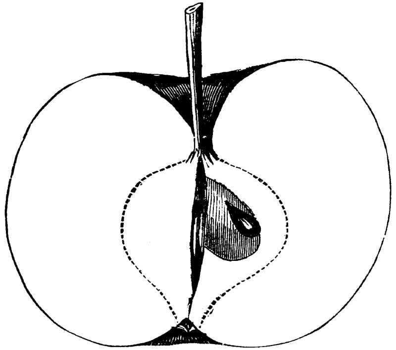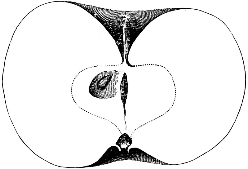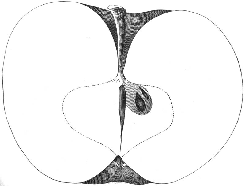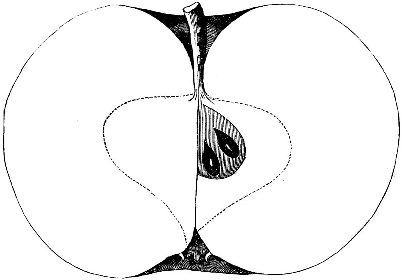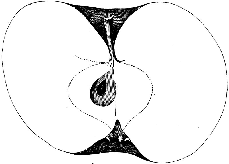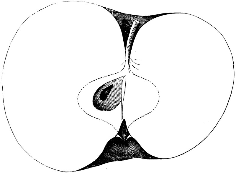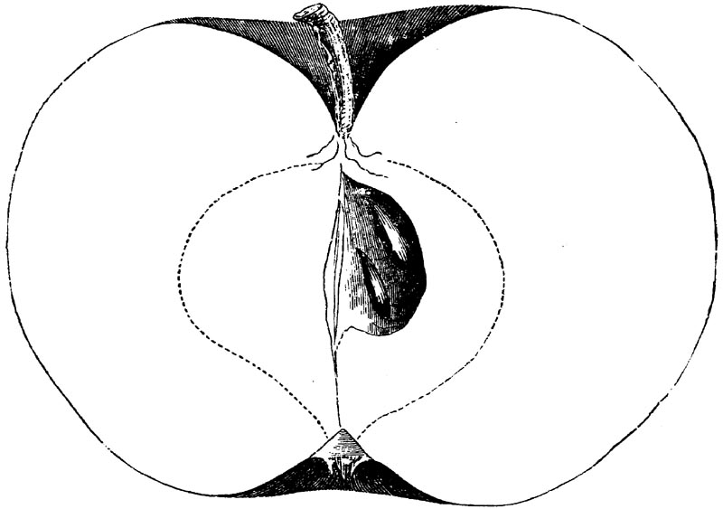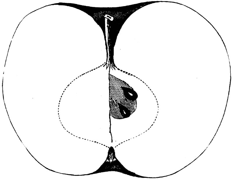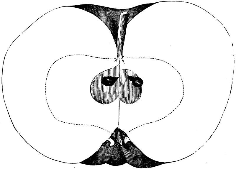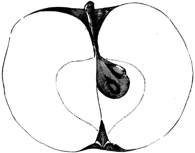 Nor is this class of food desirable for man alone. Fruits of all kinds, but particularly what may be called [18]the large fruits, such as are grown in our orchards, may be profitably cultivated for feeding our domestic animals. Sweet apples have been especially recommended for fattening swine, and when fed to cows they increase the flow of milk, or produce fat according to the condition of these animals. Think of the luxury of eating apple-fed pork! Why, even the strict Rabbi might overcome his prejudices against such swine flesh! And then dream of enjoying the luxury of fresh rich milk, yellow cream, and golden butter, from your winter dairy, instead of the sky-blue fluid, and the pallid, or an anotto-tinted, but insipid butter, resulting from the meager supplies of nutriment contained in dry hay and fibrous, woody cornstalks. Now this is not unreasonable nor ridiculous. Orchards have been planted with a succession of sweet apples that will sustain swine in a state of most perfect health, growing and fattening simultaneously from June to November; and the later varieties may be cheaply preserved for feeding stock of all kinds during the winter, when they will be best prepared by steaming, and may be fed with the greatest advantage. Our farmers do not appreciate the benefits of having green food for their animals during the winter season. Being blessed with that royal grain, the Indian corn, they do not realize the importance of the provision of roots which is so great a feature in British husbandry; but they have yet to learn, and they will learn, that for us, and under our conditions of labor and climate, they can do still better, and produce still greater results with a combination of hay or straw, corn meal and apples, all properly prepared by means of steam or hot water. Besides, such orchards may be advantageously planted in [19]many places where the soil is not adapted to the production of grain.—The reader is referred to the chapter on select lists in another part of this volume, in which an attempt will be made to present the reader with the opinions of the best pomologists of various parts of the country.