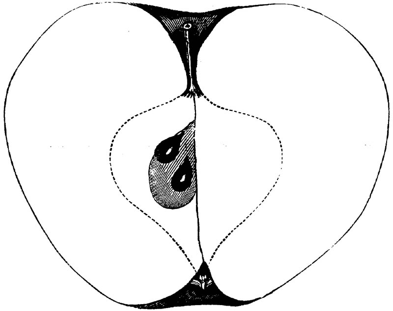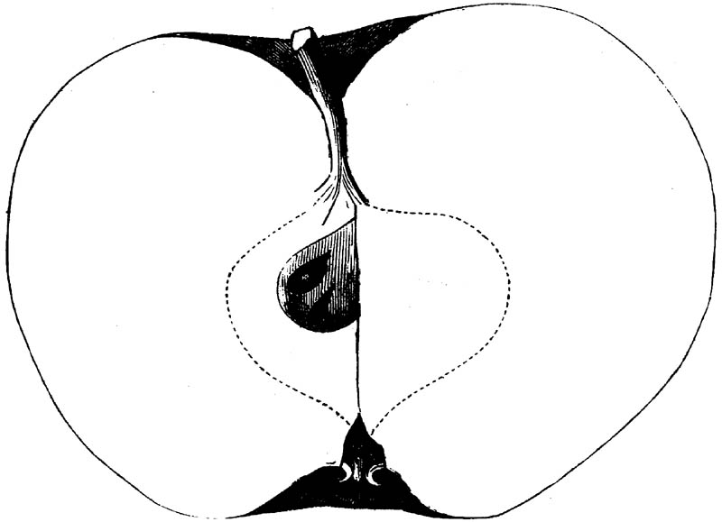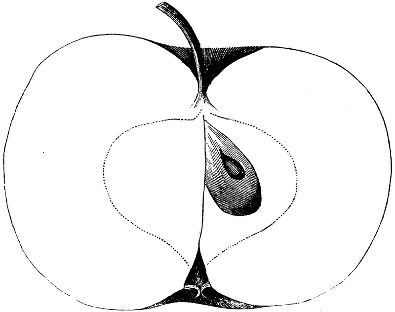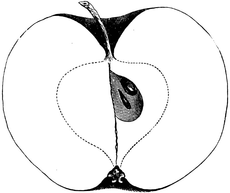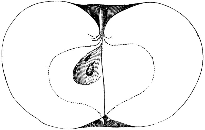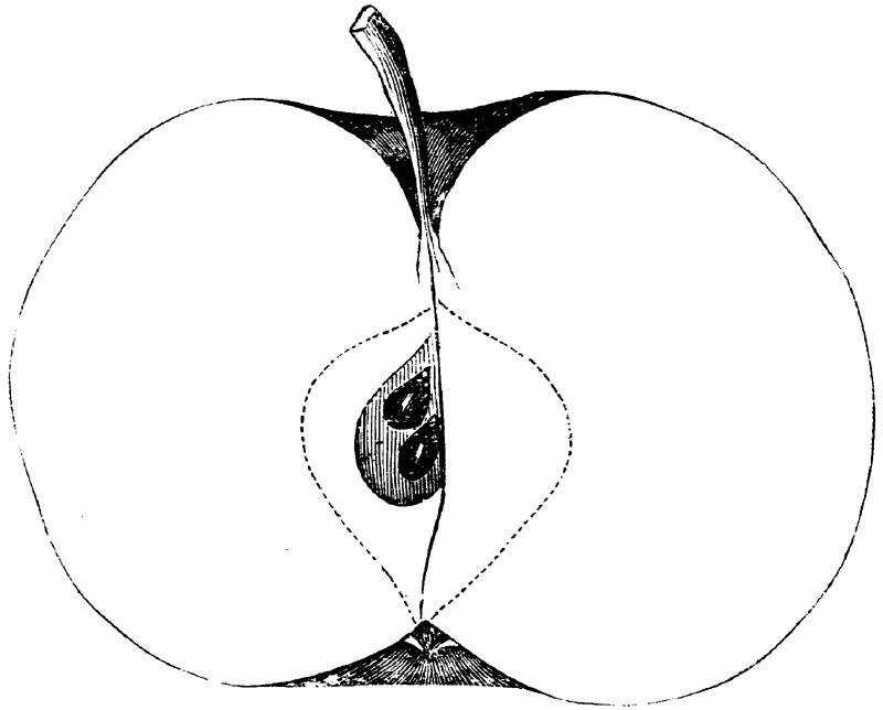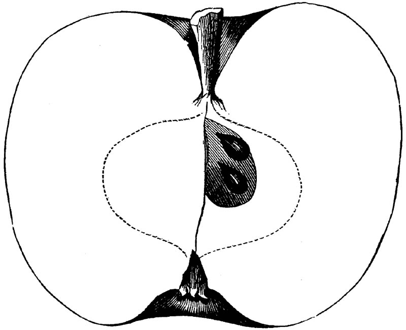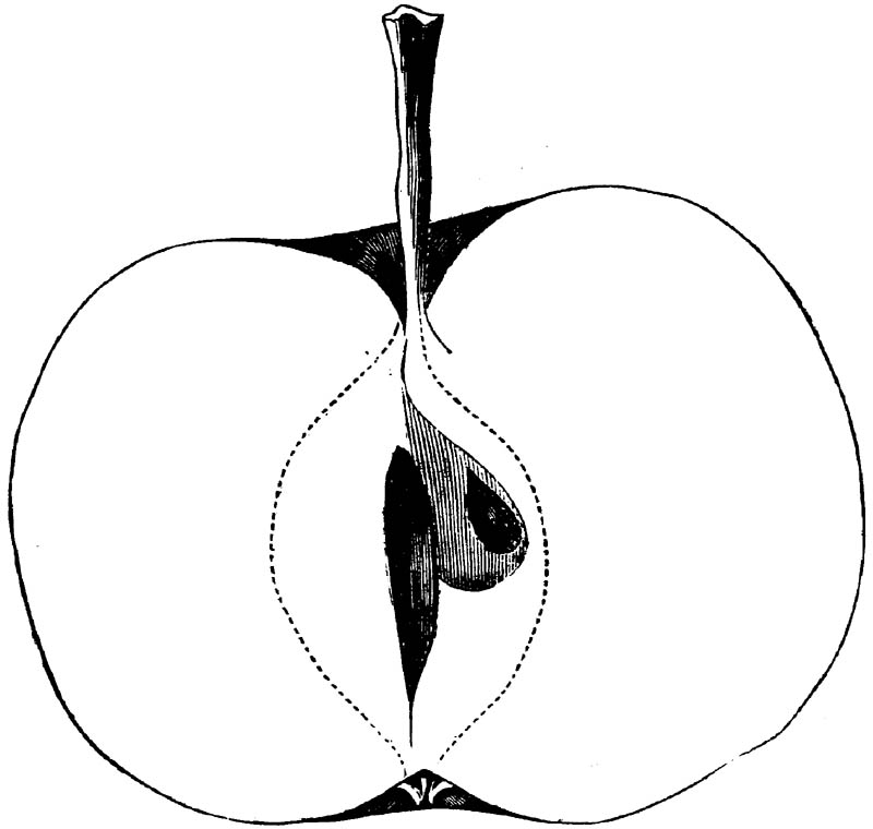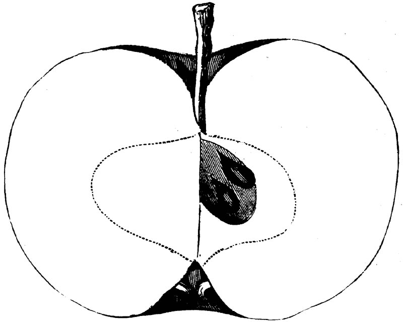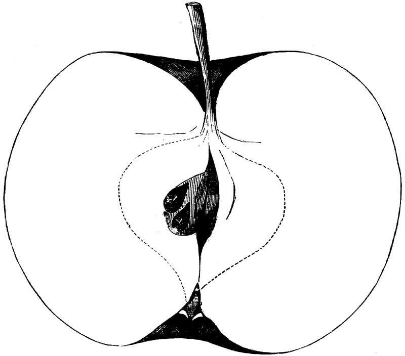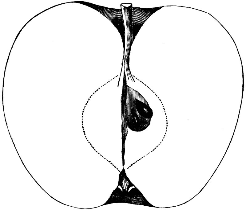Nor is this class of food desirable for man alone. Fruits of all kinds, but particularly what may be called [18]the large fruits, such as are grown in our orchards, may be profitably cultivated for feeding our domestic animals. Sweet apples have been especially recommended for fattening swine, and when fed to cows they increase the flow of milk, or produce fat according to the condition of these animals. Think of the luxury of eating apple-fed pork! Why, even the strict Rabbi might overcome his prejudices against such swine flesh! And then dream of enjoying the luxury of fresh rich milk, yellow cream, and golden butter, from your winter dairy, instead of the sky-blue fluid, and the pallid, or an anotto-tinted, but insipid butter, resulting from the meager supplies of nutriment contained in dry hay and fibrous, woody cornstalks. Now this is not unreasonable nor ridiculous. Orchards have been planted with a succession of sweet apples that will sustain swine in a state of most perfect health, growing and fattening simultaneously from June to November; and the later varieties may be cheaply preserved for feeding stock of all kinds during the winter, when they will be best prepared by steaming, and may be fed with the greatest advantage. Our farmers do not appreciate the benefits of having green food for their animals during the winter season. Being blessed with that royal grain, the Indian corn, they do not realize the importance of the provision of roots which is so great a feature in British husbandry; but they have yet to learn, and they will learn, that for us, and under our conditions of labor and climate, they can do still better, and produce still greater results with a combination of hay or straw, corn meal and apples, all properly prepared by means of steam or hot water. Besides, such orchards may be advantageously planted in [19]many places where the soil is not adapted to the production of grain.—The reader is referred to the chapter on select lists in another part of this volume, in which an attempt will be made to present the reader with the opinions of the best pomologists of various parts of the country.