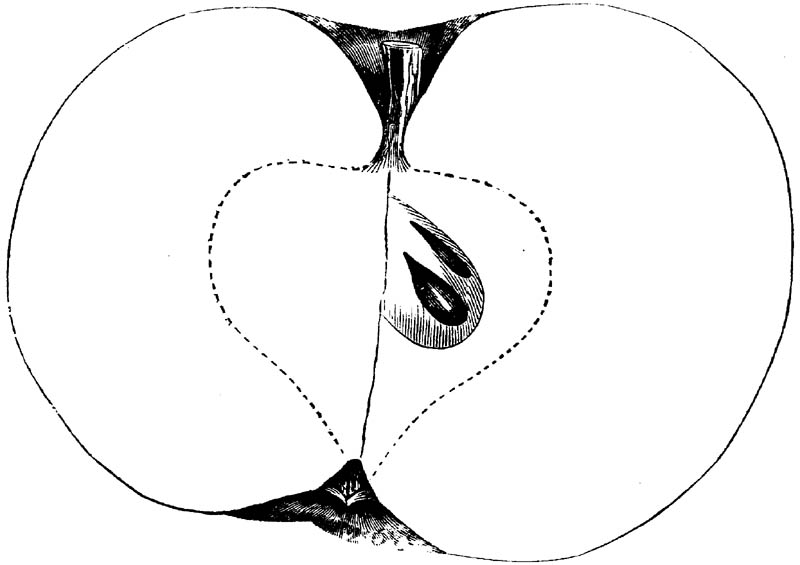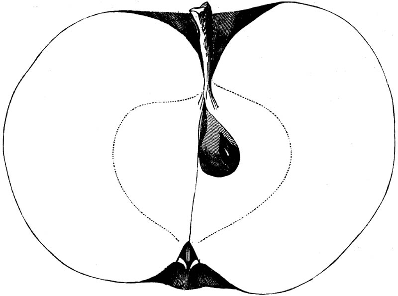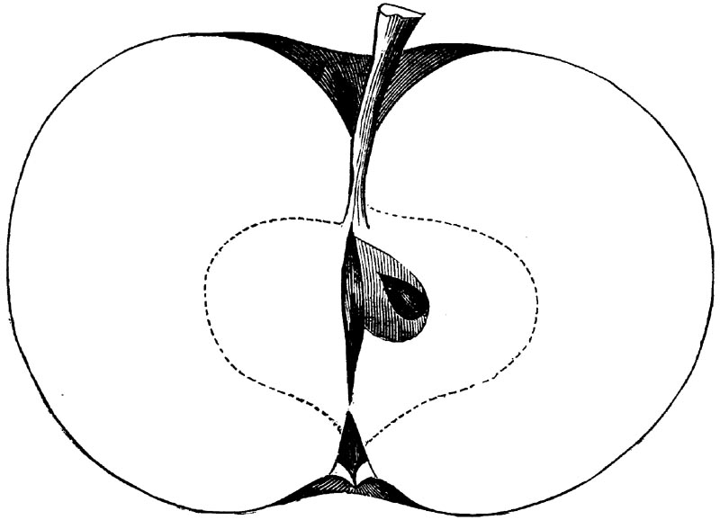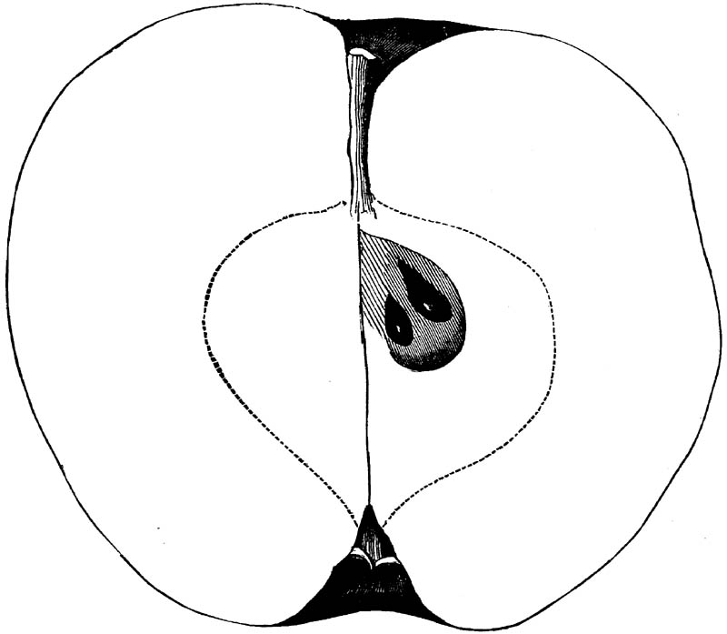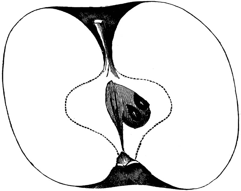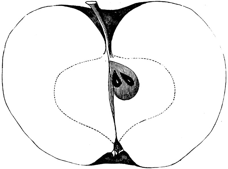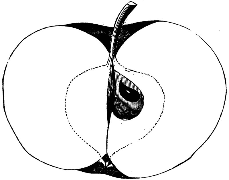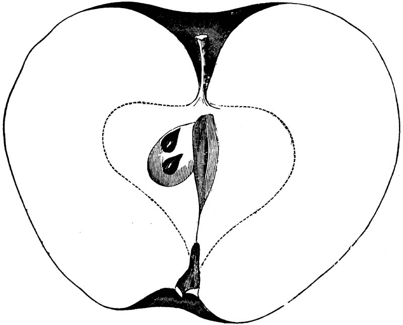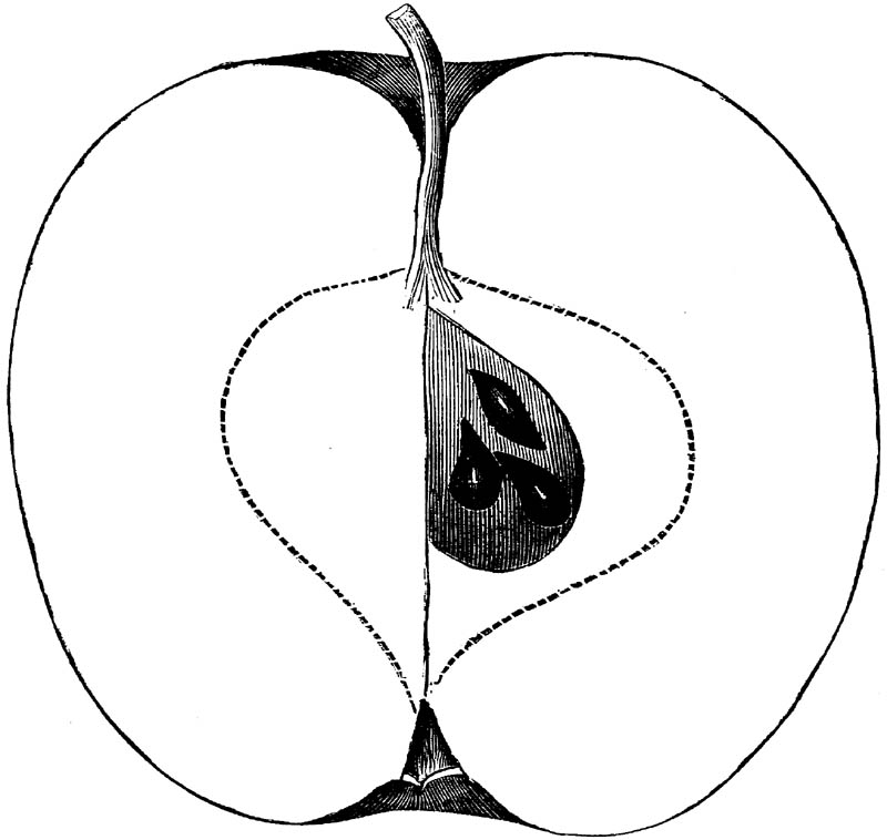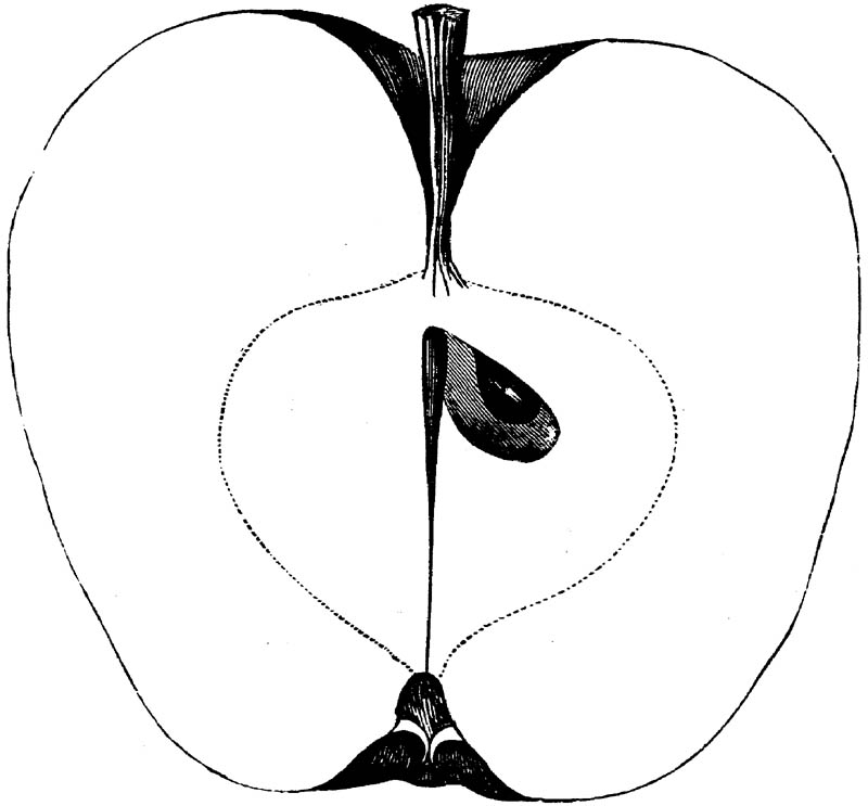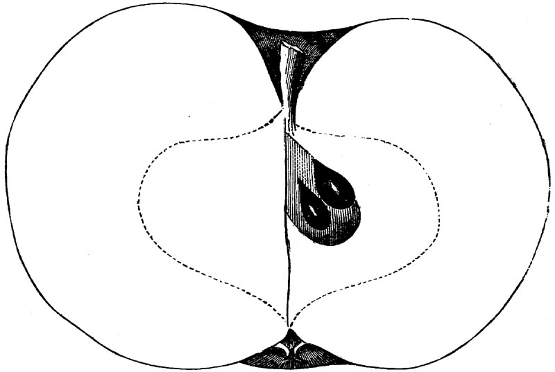 Nor is this class of food desirable for man alone. Fruits of all kinds, but particularly what may be called [18]the large fruits, such as are grown in our orchards, may be profitably cultivated for feeding our domestic animals. Sweet apples have been especially recommended for fattening swine, and when fed to cows they increase the flow of milk, or produce fat according to the condition of these animals. Think of the luxury of eating apple-fed pork! Why, even the strict Rabbi might overcome his prejudices against such swine flesh! And then dream of enjoying the luxury of fresh rich milk, yellow cream, and golden butter, from your winter dairy, instead of the sky-blue fluid, and the pallid, or an anotto-tinted, but insipid butter, resulting from the meager supplies of nutriment contained in dry hay and fibrous, woody cornstalks. Now this is not unreasonable nor ridiculous. Orchards have been planted with a succession of sweet apples that will sustain swine in a state of most perfect health, growing and fattening simultaneously from June to November; and the later varieties may be cheaply preserved for feeding stock of all kinds during the winter, when they will be best prepared by steaming, and may be fed with the greatest advantage. Our farmers do not appreciate the benefits of having green food for their animals during the winter season. Being blessed with that royal grain, the Indian corn, they do not realize the importance of the provision of roots which is so great a feature in British husbandry; but they have yet to learn, and they will learn, that for us, and under our conditions of labor and climate, they can do still better, and produce still greater results with a combination of hay or straw, corn meal and apples, all properly prepared by means of steam or hot water. Besides, such orchards may be advantageously planted in [19]many places where the soil is not adapted to the production of grain.—The reader is referred to the chapter on select lists in another part of this volume, in which an attempt will be made to present the reader with the opinions of the best pomologists of various parts of the country.