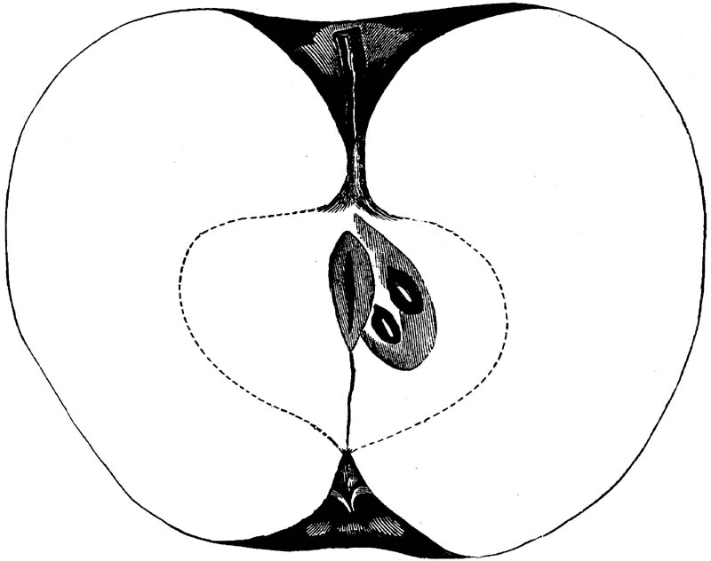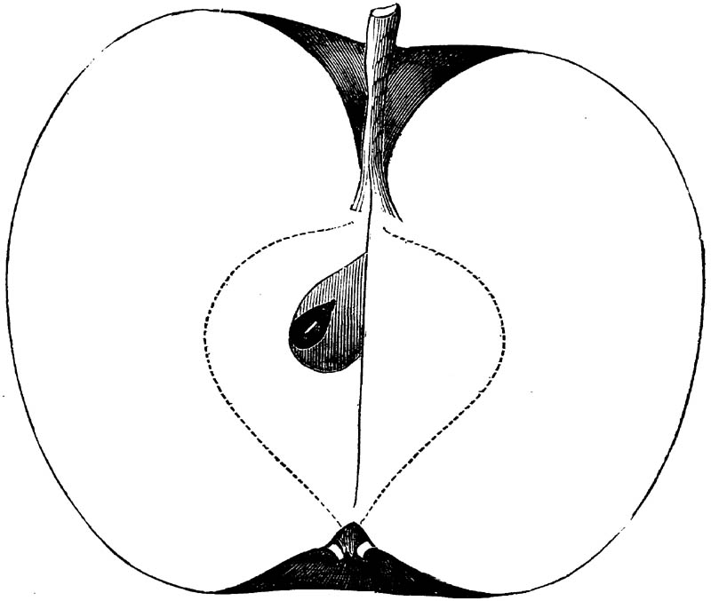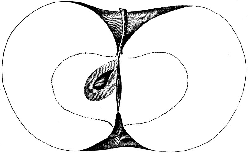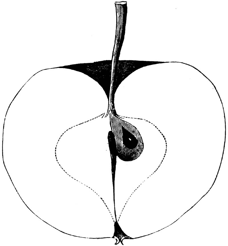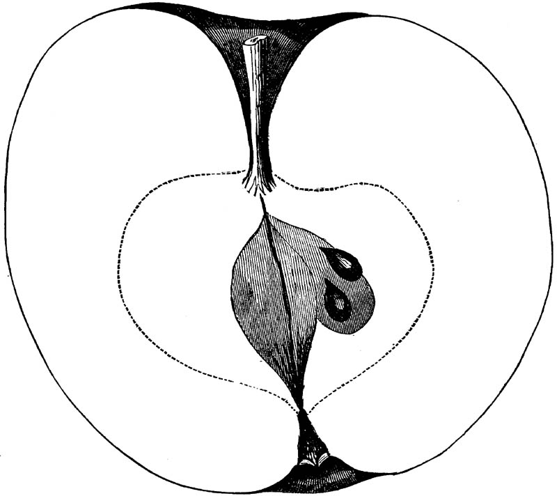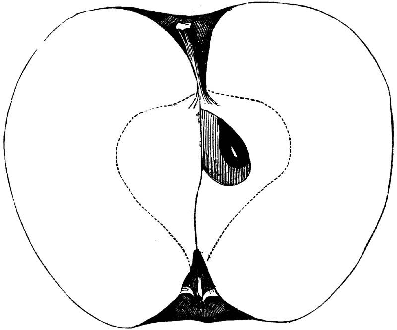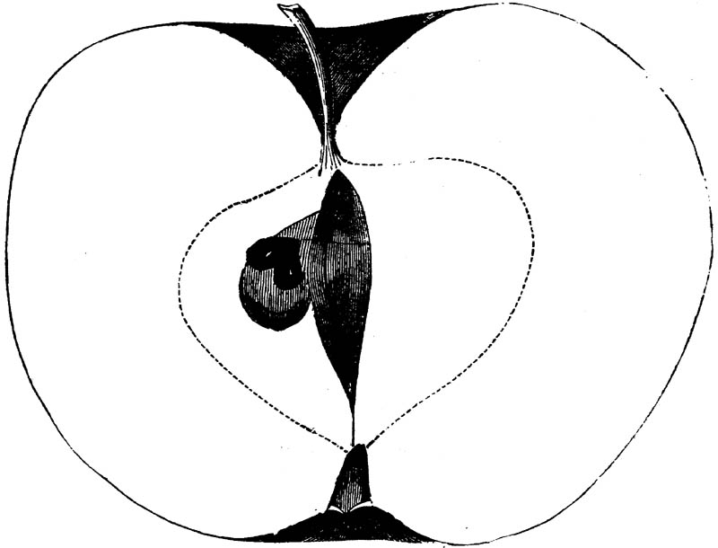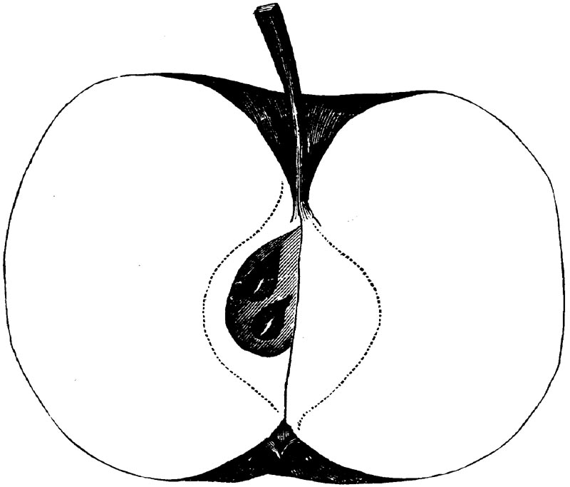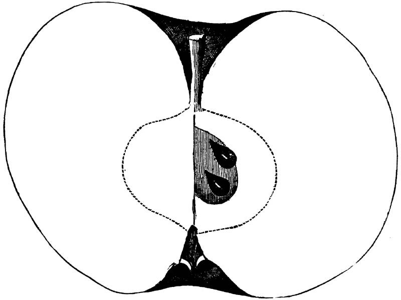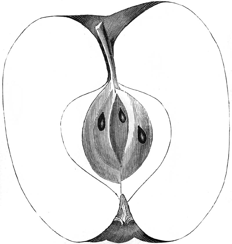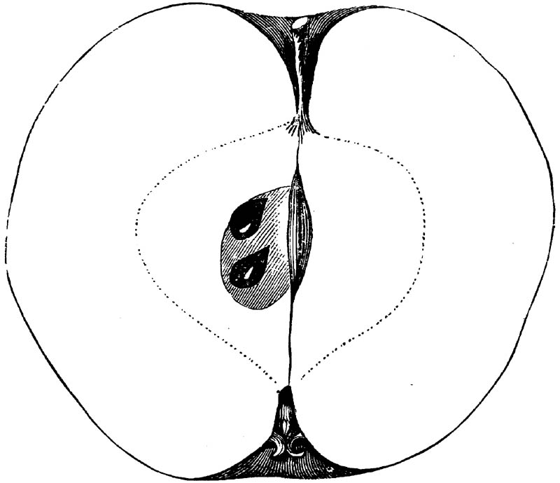 Nor is this class of food desirable for man alone. Fruits of all kinds, but particularly what may be called [18]the large fruits, such as are grown in our orchards, may be profitably cultivated for feeding our domestic animals. Sweet apples have been especially recommended for fattening swine, and when fed to cows they increase the flow of milk, or produce fat according to the condition of these animals. Think of the luxury of eating apple-fed pork! Why, even the strict Rabbi might overcome his prejudices against such swine flesh! And then dream of enjoying the luxury of fresh rich milk, yellow cream, and golden butter, from your winter dairy, instead of the sky-blue fluid, and the pallid, or an anotto-tinted, but insipid butter, resulting from the meager supplies of nutriment contained in dry hay and fibrous, woody cornstalks. Now this is not unreasonable nor ridiculous. Orchards have been planted with a succession of sweet apples that will sustain swine in a state of most perfect health, growing and fattening simultaneously from June to November; and the later varieties may be cheaply preserved for feeding stock of all kinds during the winter, when they will be best prepared by steaming, and may be fed with the greatest advantage. Our farmers do not appreciate the benefits of having green food for their animals during the winter season. Being blessed with that royal grain, the Indian corn, they do not realize the importance of the provision of roots which is so great a feature in British husbandry; but they have yet to learn, and they will learn, that for us, and under our conditions of labor and climate, they can do still better, and produce still greater results with a combination of hay or straw, corn meal and apples, all properly prepared by means of steam or hot water. Besides, such orchards may be advantageously planted in [19]many places where the soil is not adapted to the production of grain.—The reader is referred to the chapter on select lists in another part of this volume, in which an attempt will be made to present the reader with the opinions of the best pomologists of various parts of the country.