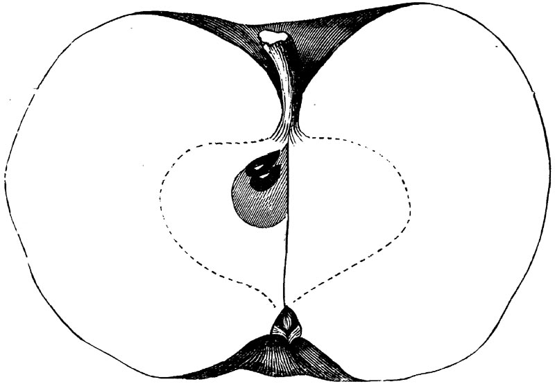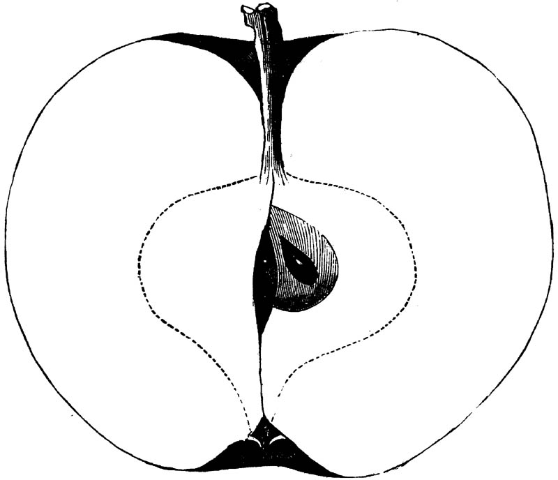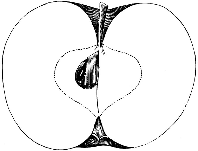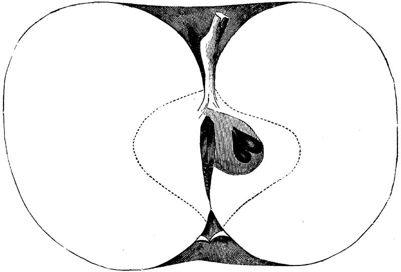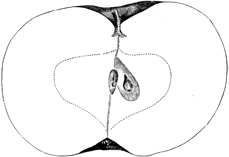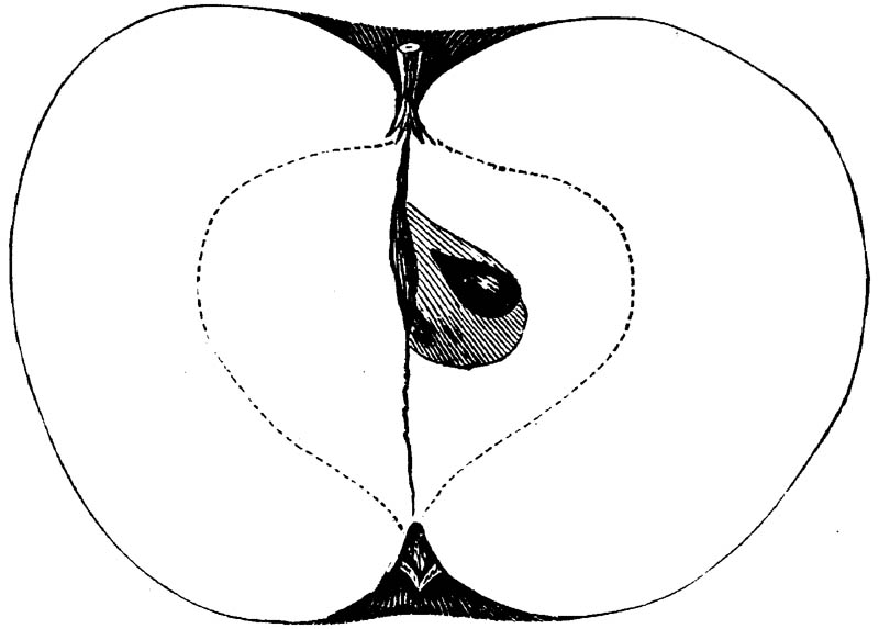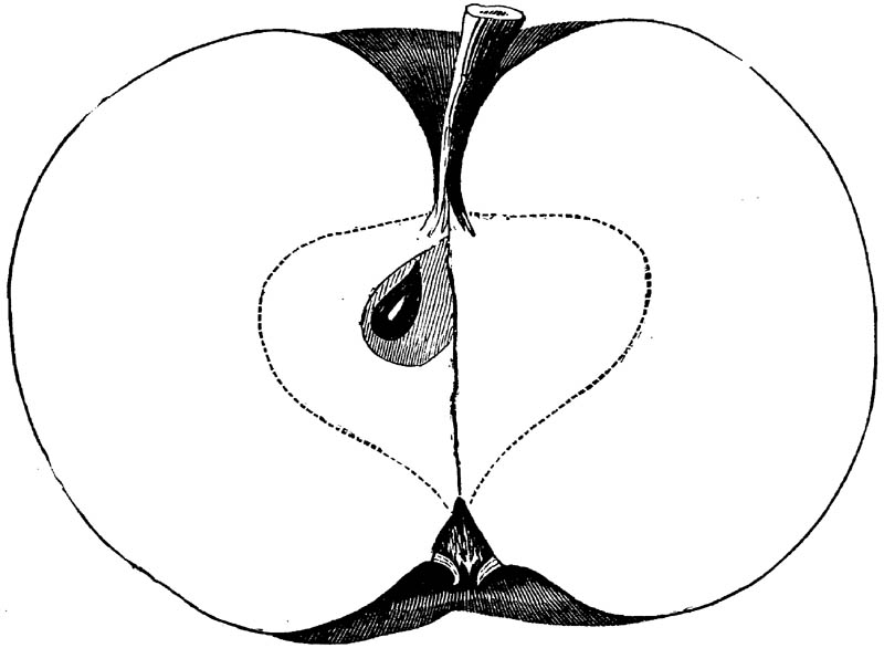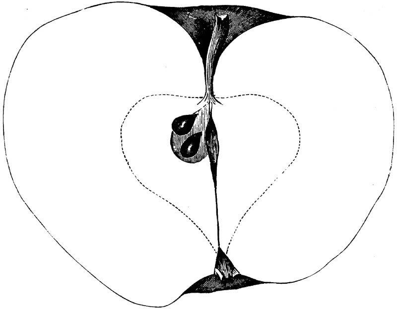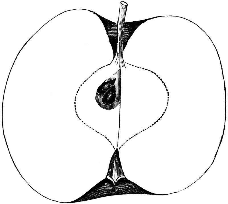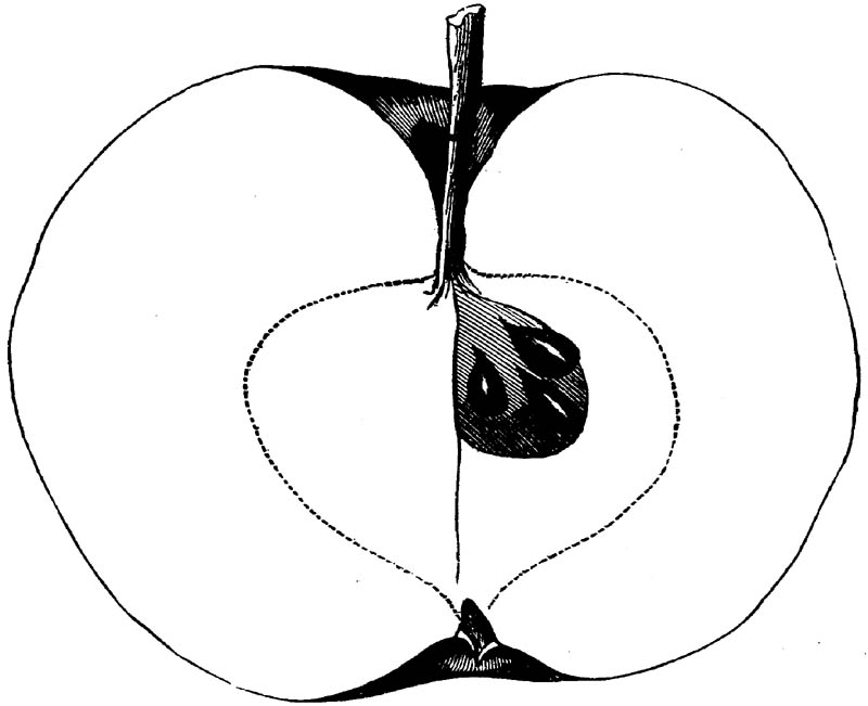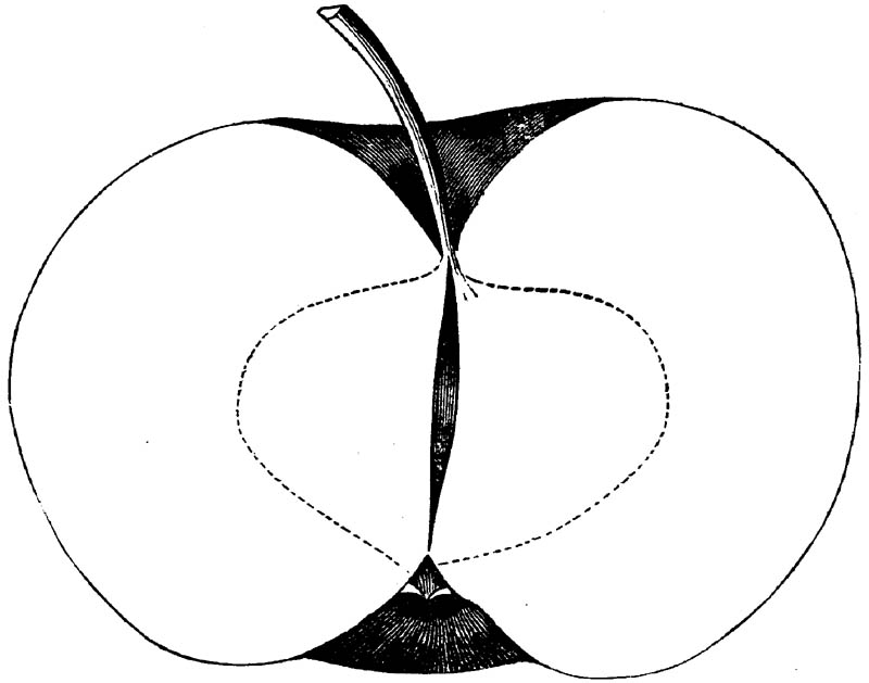 Nor is this class of food desirable for man alone. Fruits of all kinds, but particularly what may be called [18]the large fruits, such as are grown in our orchards, may be profitably cultivated for feeding our domestic animals. Sweet apples have been especially recommended for fattening swine, and when fed to cows they increase the flow of milk, or produce fat according to the condition of these animals. Think of the luxury of eating apple-fed pork! Why, even the strict Rabbi might overcome his prejudices against such swine flesh! And then dream of enjoying the luxury of fresh rich milk, yellow cream, and golden butter, from your winter dairy, instead of the sky-blue fluid, and the pallid, or an anotto-tinted, but insipid butter, resulting from the meager supplies of nutriment contained in dry hay and fibrous, woody cornstalks. Now this is not unreasonable nor ridiculous. Orchards have been planted with a succession of sweet apples that will sustain swine in a state of most perfect health, growing and fattening simultaneously from June to November; and the later varieties may be cheaply preserved for feeding stock of all kinds during the winter, when they will be best prepared by steaming, and may be fed with the greatest advantage. Our farmers do not appreciate the benefits of having green food for their animals during the winter season. Being blessed with that royal grain, the Indian corn, they do not realize the importance of the provision of roots which is so great a feature in British husbandry; but they have yet to learn, and they will learn, that for us, and under our conditions of labor and climate, they can do still better, and produce still greater results with a combination of hay or straw, corn meal and apples, all properly prepared by means of steam or hot water. Besides, such orchards may be advantageously planted in [19]many places where the soil is not adapted to the production of grain.—The reader is referred to the chapter on select lists in another part of this volume, in which an attempt will be made to present the reader with the opinions of the best pomologists of various parts of the country.