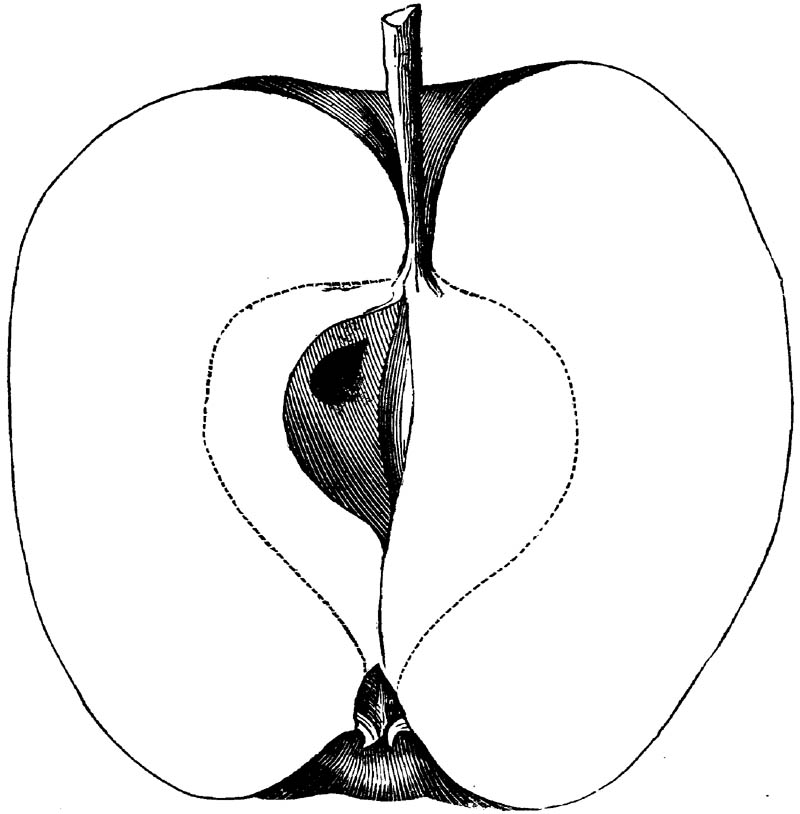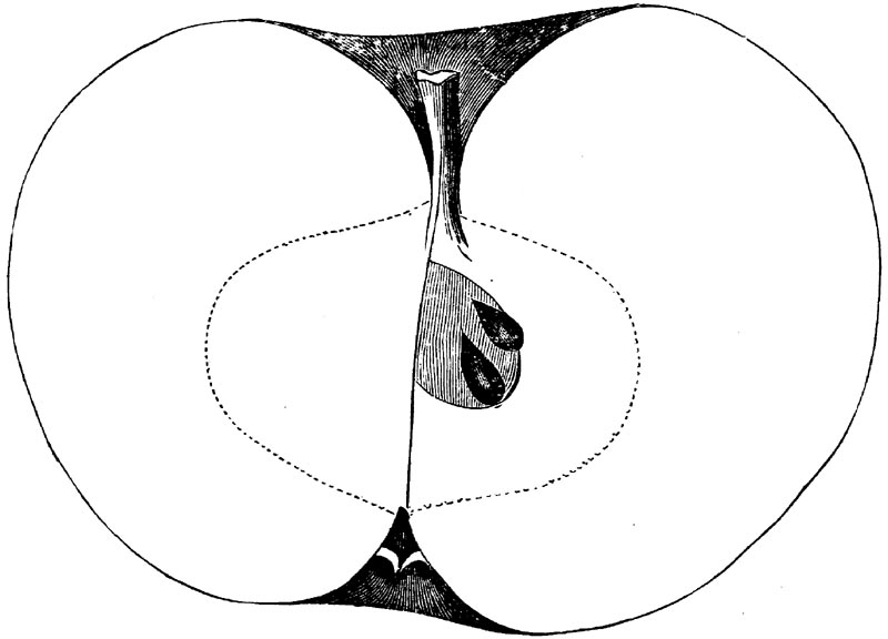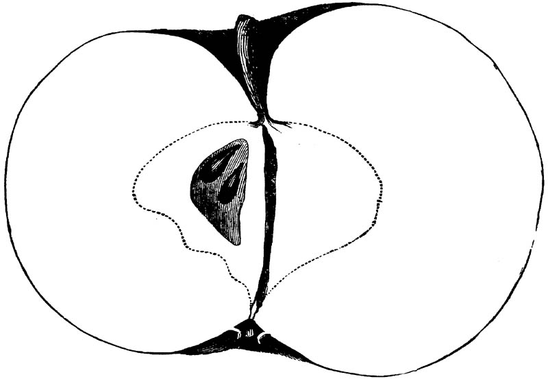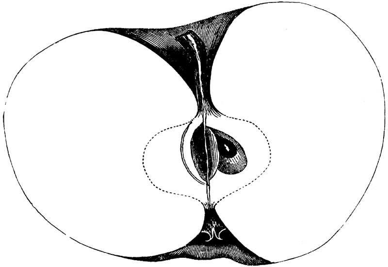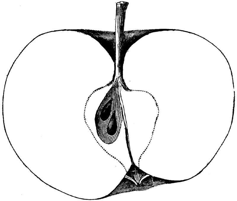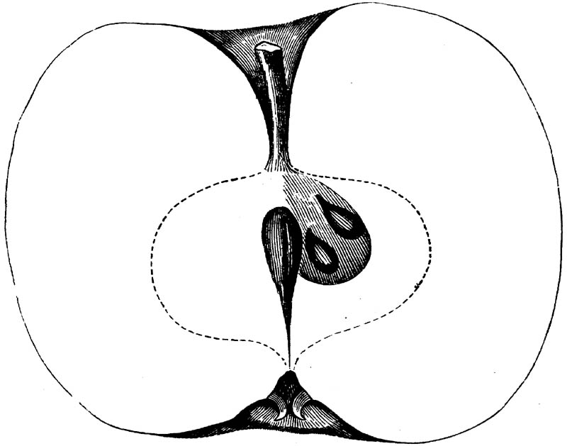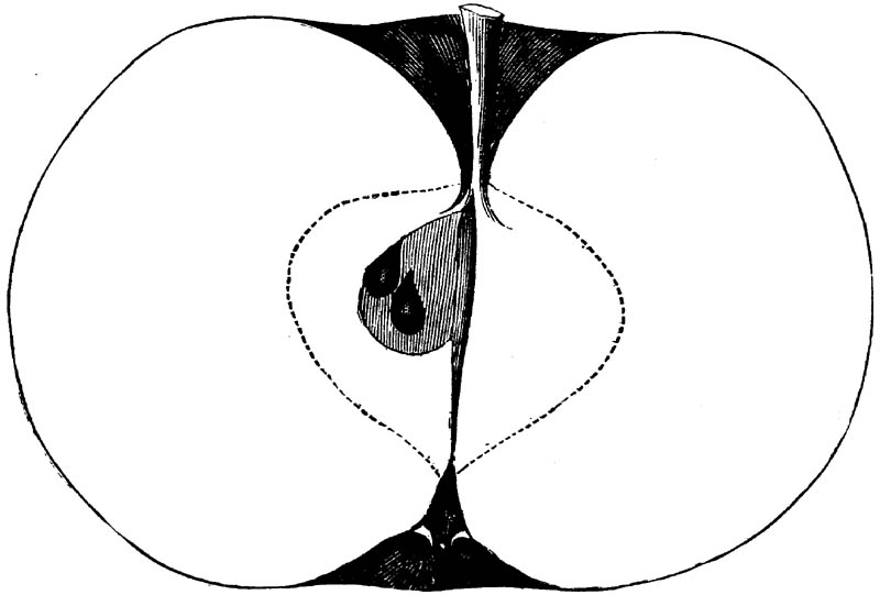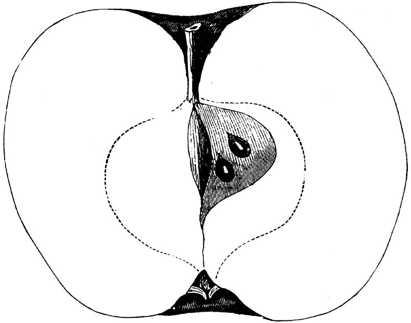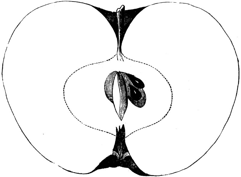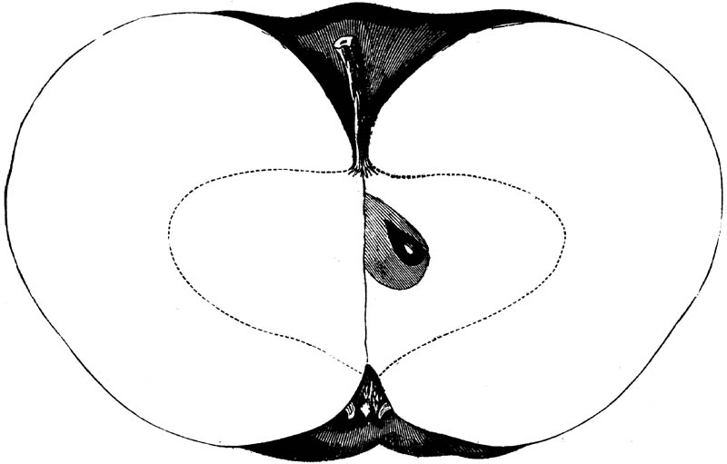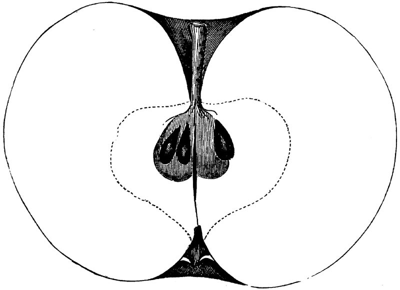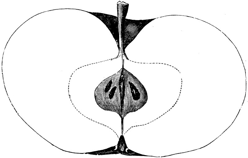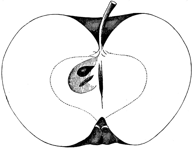 Nor is this class of food desirable for man alone. Fruits of all kinds, but particularly what may be called [18]the large fruits, such as are grown in our orchards, may be profitably cultivated for feeding our domestic animals. Sweet apples have been especially recommended for fattening swine, and when fed to cows they increase the flow of milk, or produce fat according to the condition of these animals. Think of the luxury of eating apple-fed pork! Why, even the strict Rabbi might overcome his prejudices against such swine flesh! And then dream of enjoying the luxury of fresh rich milk, yellow cream, and golden butter, from your winter dairy, instead of the sky-blue fluid, and the pallid, or an anotto-tinted, but insipid butter, resulting from the meager supplies of nutriment contained in dry hay and fibrous, woody cornstalks. Now this is not unreasonable nor ridiculous. Orchards have been planted with a succession of sweet apples that will sustain swine in a state of most perfect health, growing and fattening simultaneously from June to November; and the later varieties may be cheaply preserved for feeding stock of all kinds during the winter, when they will be best prepared by steaming, and may be fed with the greatest advantage. Our farmers do not appreciate the benefits of having green food for their animals during the winter season. Being blessed with that royal grain, the Indian corn, they do not realize the importance of the provision of roots which is so great a feature in British husbandry; but they have yet to learn, and they will learn, that for us, and under our conditions of labor and climate, they can do still better, and produce still greater results with a combination of hay or straw, corn meal and apples, all properly prepared by means of steam or hot water. Besides, such orchards may be advantageously planted in [19]many places where the soil is not adapted to the production of grain.—The reader is referred to the chapter on select lists in another part of this volume, in which an attempt will be made to present the reader with the opinions of the best pomologists of various parts of the country.