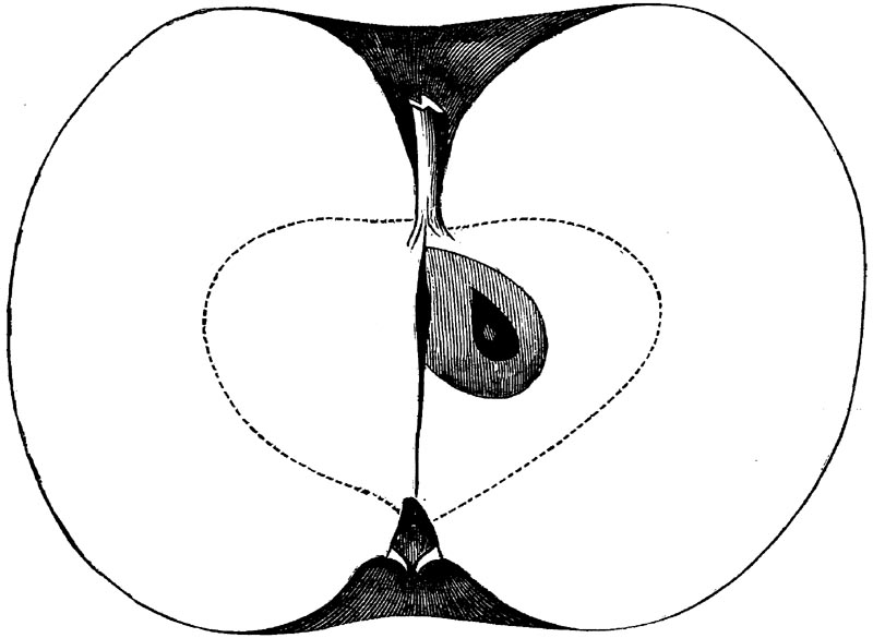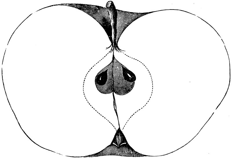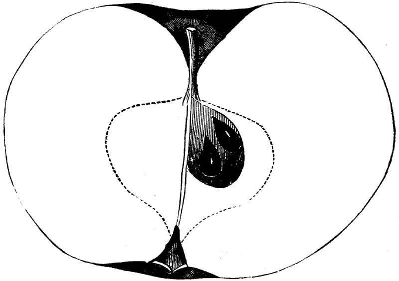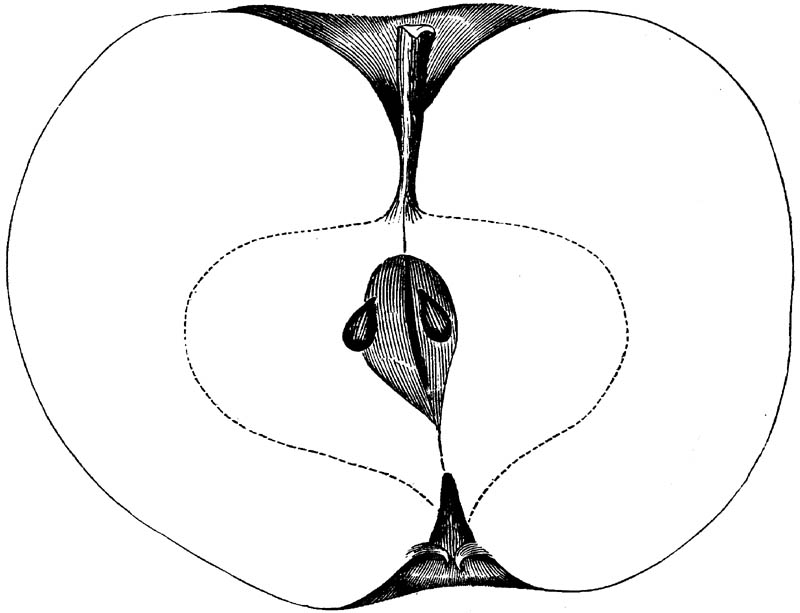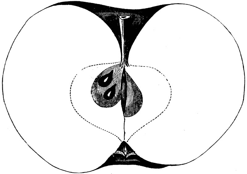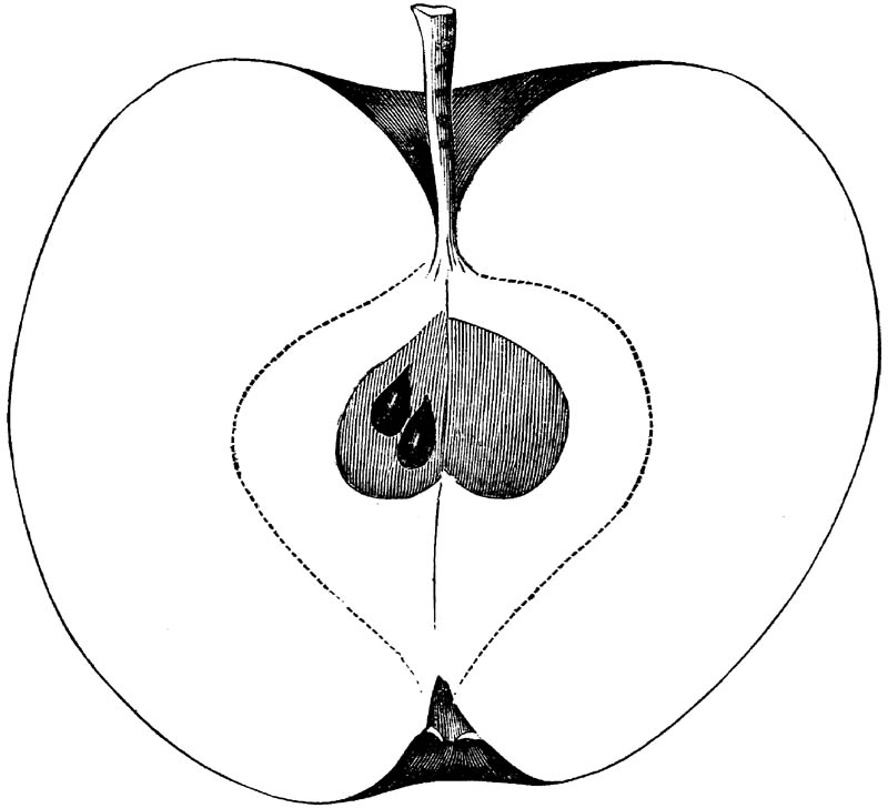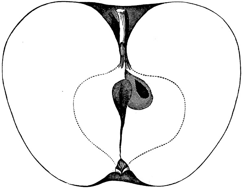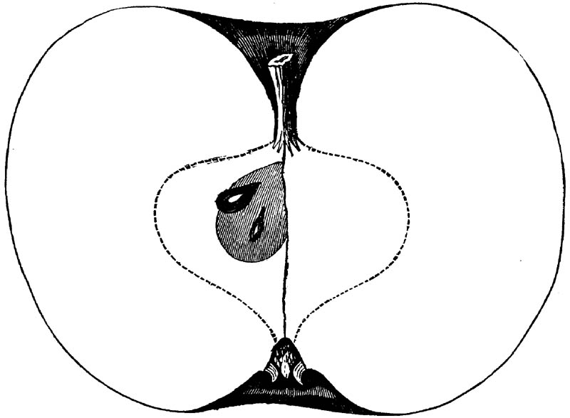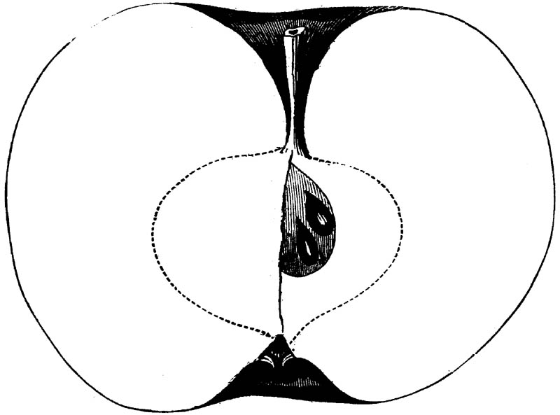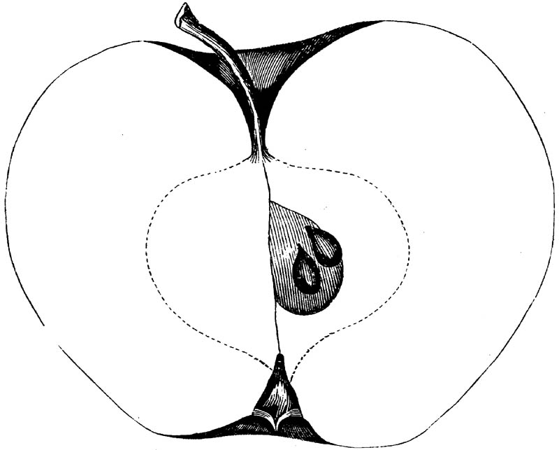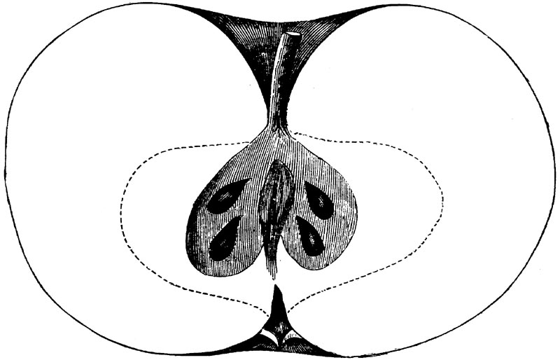 Nor is this class of food desirable for man alone. Fruits of all kinds, but particularly what may be called [18]the large fruits, such as are grown in our orchards, may be profitably cultivated for feeding our domestic animals. Sweet apples have been especially recommended for fattening swine, and when fed to cows they increase the flow of milk, or produce fat according to the condition of these animals. Think of the luxury of eating apple-fed pork! Why, even the strict Rabbi might overcome his prejudices against such swine flesh! And then dream of enjoying the luxury of fresh rich milk, yellow cream, and golden butter, from your winter dairy, instead of the sky-blue fluid, and the pallid, or an anotto-tinted, but insipid butter, resulting from the meager supplies of nutriment contained in dry hay and fibrous, woody cornstalks. Now this is not unreasonable nor ridiculous. Orchards have been planted with a succession of sweet apples that will sustain swine in a state of most perfect health, growing and fattening simultaneously from June to November; and the later varieties may be cheaply preserved for feeding stock of all kinds during the winter, when they will be best prepared by steaming, and may be fed with the greatest advantage. Our farmers do not appreciate the benefits of having green food for their animals during the winter season. Being blessed with that royal grain, the Indian corn, they do not realize the importance of the provision of roots which is so great a feature in British husbandry; but they have yet to learn, and they will learn, that for us, and under our conditions of labor and climate, they can do still better, and produce still greater results with a combination of hay or straw, corn meal and apples, all properly prepared by means of steam or hot water. Besides, such orchards may be advantageously planted in [19]many places where the soil is not adapted to the production of grain.—The reader is referred to the chapter on select lists in another part of this volume, in which an attempt will be made to present the reader with the opinions of the best pomologists of various parts of the country.