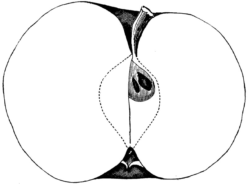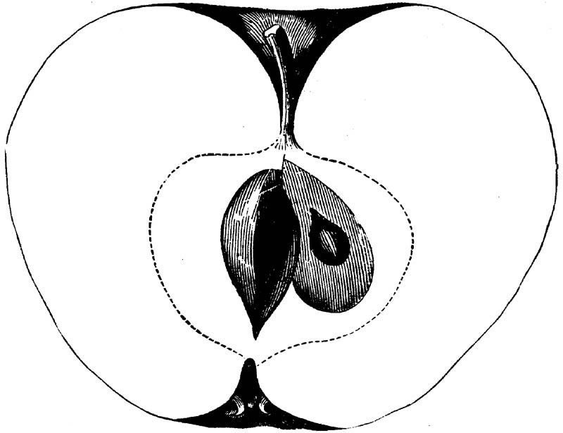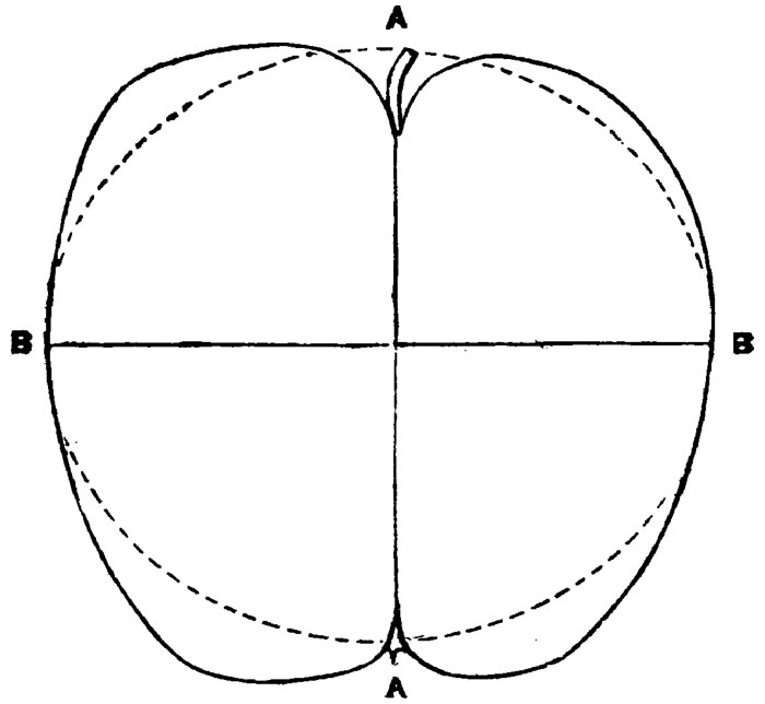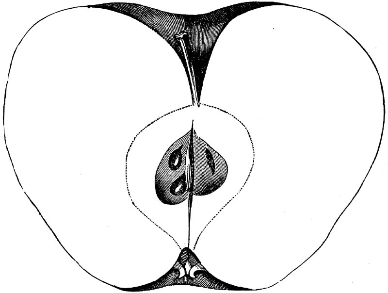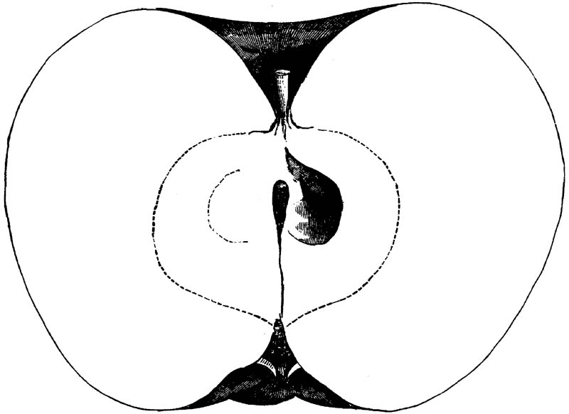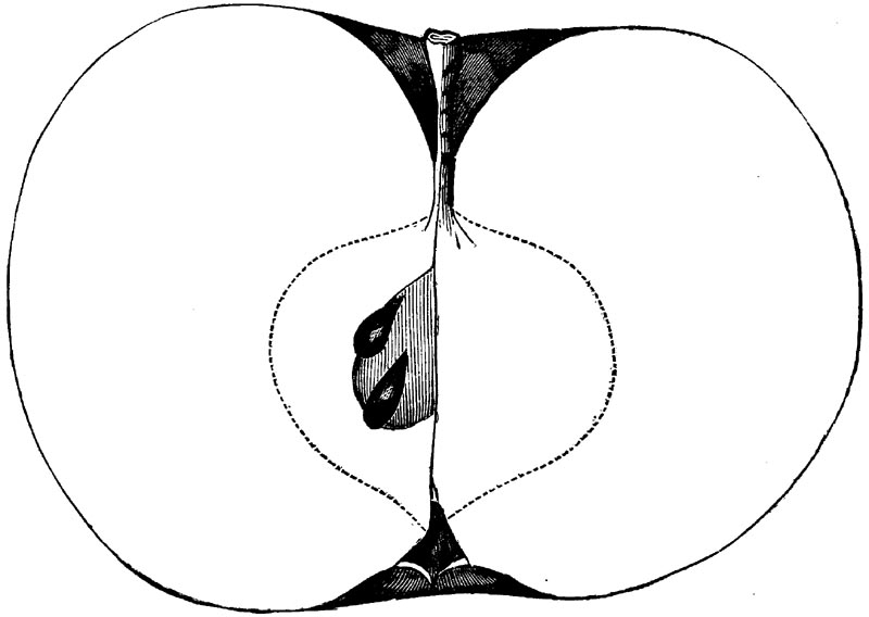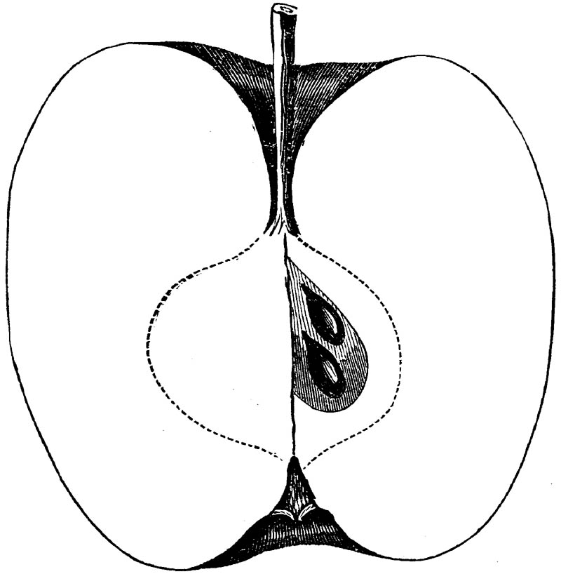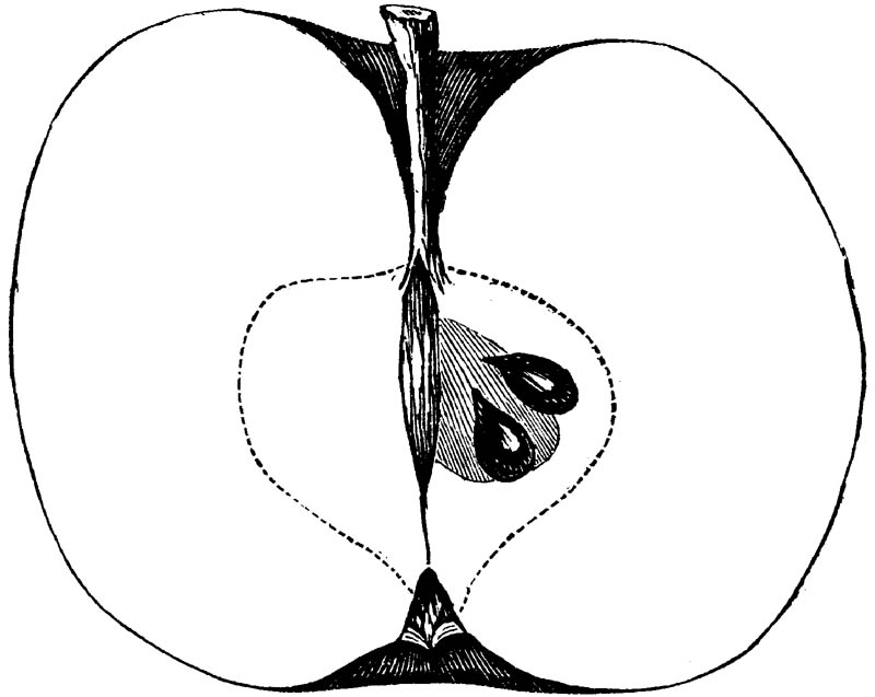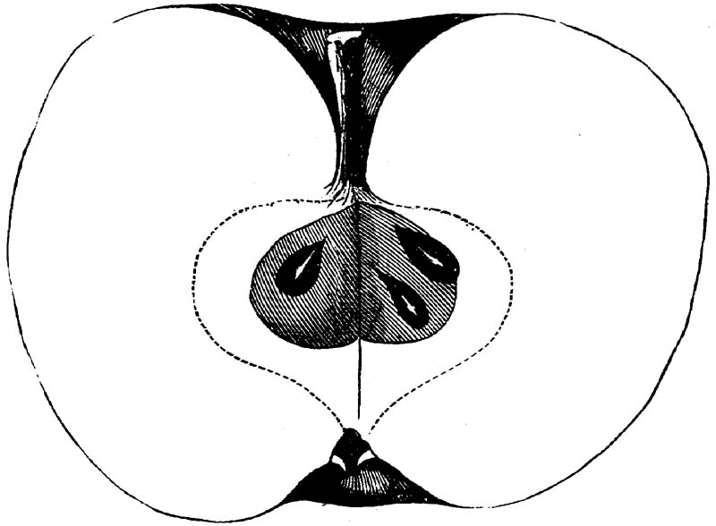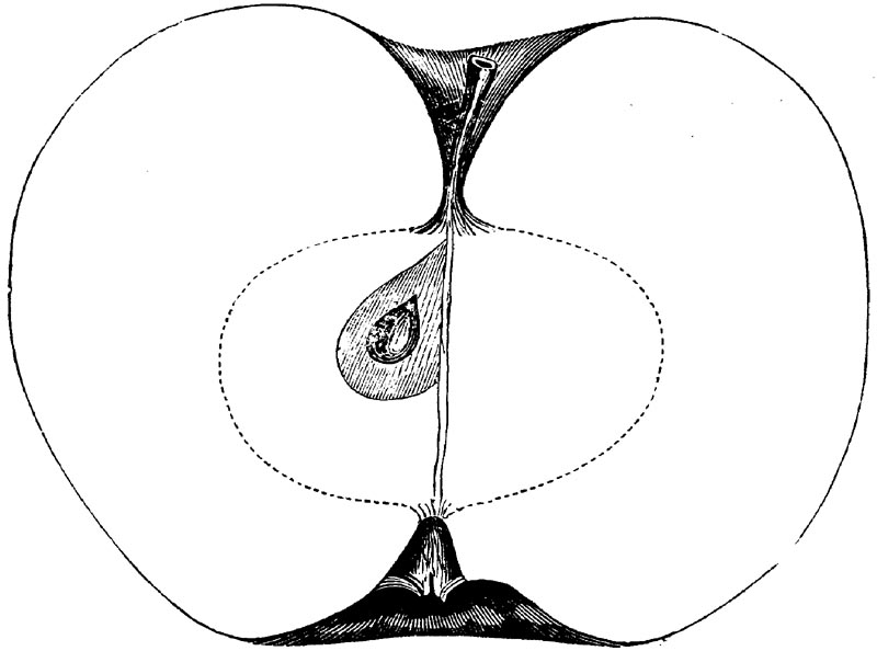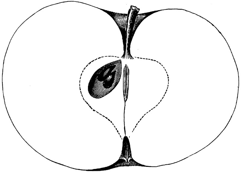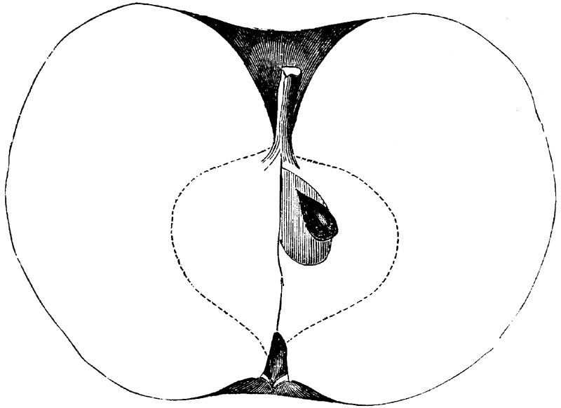 Nor is this class of food desirable for man alone. Fruits of all kinds, but particularly what may be called [18]the large fruits, such as are grown in our orchards, may be profitably cultivated for feeding our domestic animals. Sweet apples have been especially recommended for fattening swine, and when fed to cows they increase the flow of milk, or produce fat according to the condition of these animals. Think of the luxury of eating apple-fed pork! Why, even the strict Rabbi might overcome his prejudices against such swine flesh! And then dream of enjoying the luxury of fresh rich milk, yellow cream, and golden butter, from your winter dairy, instead of the sky-blue fluid, and the pallid, or an anotto-tinted, but insipid butter, resulting from the meager supplies of nutriment contained in dry hay and fibrous, woody cornstalks. Now this is not unreasonable nor ridiculous. Orchards have been planted with a succession of sweet apples that will sustain swine in a state of most perfect health, growing and fattening simultaneously from June to November; and the later varieties may be cheaply preserved for feeding stock of all kinds during the winter, when they will be best prepared by steaming, and may be fed with the greatest advantage. Our farmers do not appreciate the benefits of having green food for their animals during the winter season. Being blessed with that royal grain, the Indian corn, they do not realize the importance of the provision of roots which is so great a feature in British husbandry; but they have yet to learn, and they will learn, that for us, and under our conditions of labor and climate, they can do still better, and produce still greater results with a combination of hay or straw, corn meal and apples, all properly prepared by means of steam or hot water. Besides, such orchards may be advantageously planted in [19]many places where the soil is not adapted to the production of grain.—The reader is referred to the chapter on select lists in another part of this volume, in which an attempt will be made to present the reader with the opinions of the best pomologists of various parts of the country.