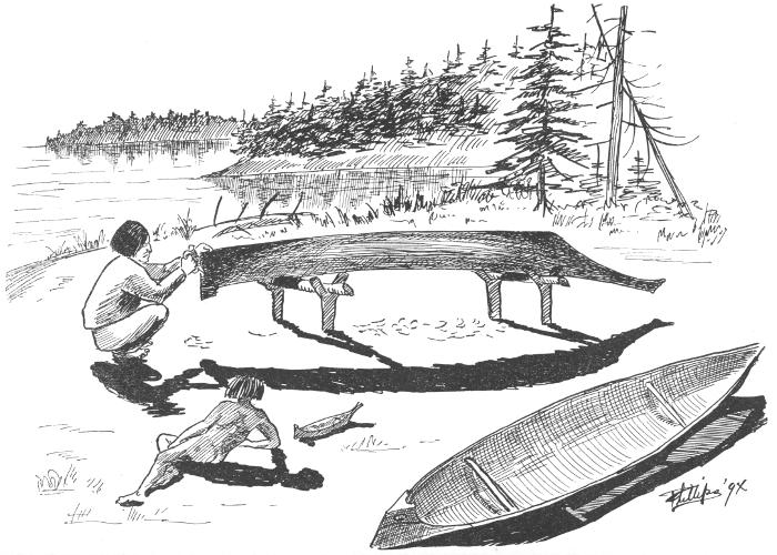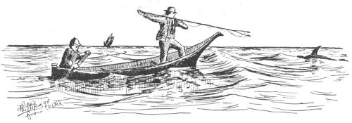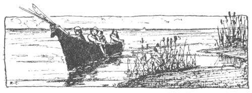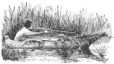 He is silent as a shadow and piles branches and grass all over his canoe to enable him to do just the right kind of a “sneak” on his unsuspecting victims.