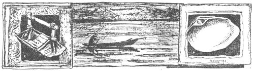 In the deeper ones crabs scurry away in a misfit, sideways fashion, peculiarly their own, and flounders fan their shingle shaped bulk down in the friendly slime and there lie buried as the roil drifts away, conforming so closely with the color of the bottom as to be invisible to any one but a Siwash. They can’t fool a Siwash a little bit for he just picks up a spear from his canoe, makes a jab at the muddy spot and eats flounder when he gets hungry.