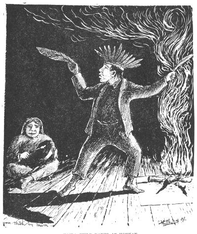 “A great circle dance was formed; the ta-mahn-a-wis or spirit dance was enacted. Great gifts were made as at a pow-wow or wah-wah. Then the dark crowd grew frantic, and under the full moon gleaming on high came the devil’s dance.