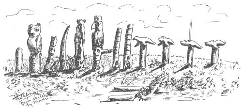 A long time ago an English whaling bark, after many months of hardship on the voyage, was caught in a heavy gale off Vancouver island coast. After a gallant effort to save the ship and ride out the storm, the captain and crew took to the life-boat, and though a long way from land and with the tempest howling about them, struck bravely out for safety. Nothing was ever heard or seen of the sinking ship. But one of the brave crew reached land to live to tell the awful tale of shipwreck and death which engulfed his companions. It was while trying to make land through the surf of Queen Charlotte sound, that the captain and crew went down. The empty and battered boat was cast upon the shore and with it one half-drowned sailor who, after a time was able to rise from the sand and stagger about.