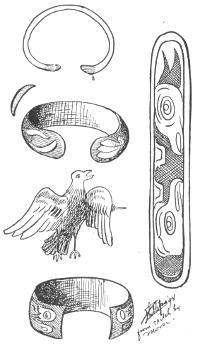 In 1858 Commander Meade, U. S. N., found it necessary to reduce to ashes two villages of the Kake Indians on Kiou island, on account of the murder of innocent prospectors. These Kake Indians are the most hostile of any of the Alaska families. They are probably not T’Klinkits. It has been urged by some that they, as well as the Haidas, just to the south of them, are descendants of the ancient Aztecs of Mexico, who were driven out upon the fall of the great Montezuma.