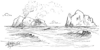 The country on the main land, both on the Shumagin islands and the Alaska peninsula as well as on the Aleutian chain, is composed of ragged bluffs and deep canyons, betraying evidence of much volcanic activity in recent times. Where the rocks do not come to the surface these hills are generally covered by a thin growth of small alders which rarely grow to be more than six or seven feet in height. Between the clusters of alder there are often found growing salmon-berry bushes which seldom exceed a foot in height. Grass sprinkled with fragrant violets, grows luxuriantly in some places. In others wild strawberries and small blackberry vines are abundant.