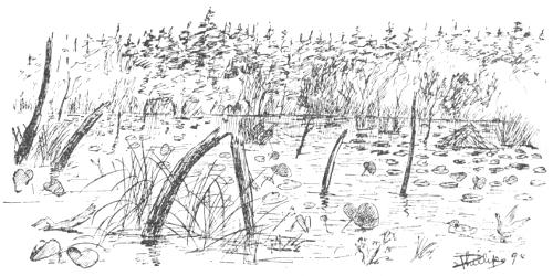 These little waterways lead everywhere, and in walking about you find yourself unexpectedly confronted by a ditch a little too wide to jump over and a trifle to deep to wade, when you stop to consider that the bottom mud may be any depth you take a notion to imagine it, but at best deep enough to let the water in over the tops of your waders.