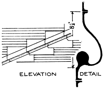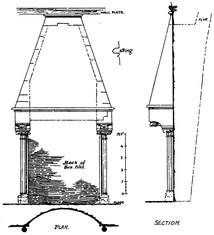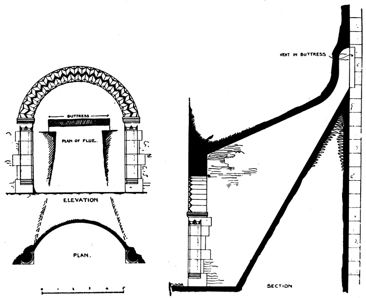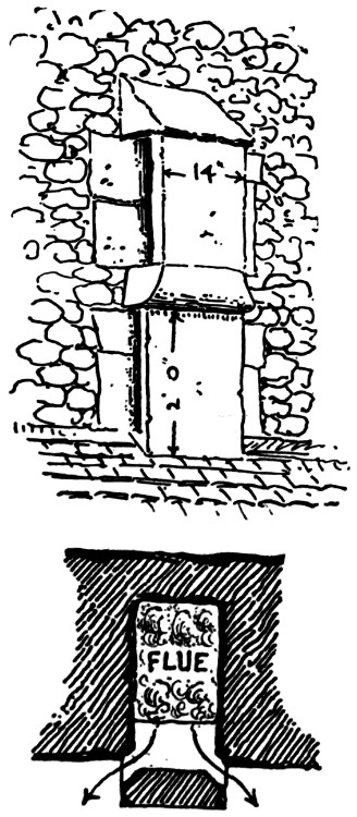 A Fireplace. Showing the short flue leading to a vertical vent in the face of the wall.