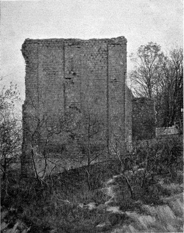 There were apparently two entrances to the courtyard. The chief of these was adjacent to the dale, and from the remains of the arch stones would appear to have been some 5 or 6 ft. wide. Here is said to have been the porter’s rooms, and if this were the main entrance, custom would place the porter there. At the other end of the wall, against the gorge, are the remains of what has been called the sally-port; but the work has been so much defaced as to render its purpose obscure. Between these two features there is a rectangular buttressed projection which may have contained rooms, while overlooking the gorge is a recess in the wall which seems to have been a window. It is said—but[17] the statement has not been properly verified—that there are remains of the foundations of a structure which carried a drawbridge across the narrow upper end of the gorge; and it is almost certain that an ancient track leads along the hill on the further side of the gorge in the direction of the castle. All these points are of interest, and are worthy of further investigation; but that part of the ruins which most readily repays a visit is the keep. This has been described as merely a prison or a watch-tower; but from the carefully selected position of the castle, from what is known of its history, from the fact that the little town of Castleton clusters at its foot, and from a comparison with other castles, it would seem that the tower is the small keep of a small castle, and was its most secure dwelling-place. References in the great Roll of the Pipe show that a considerable number of soldiers were accommodated here; it is also recorded that in 1157 Malcolm of Scotland made his personal submission to Henry II. here, and that that king was again here in 1163, when the castle must have had even more restricted accommodation.