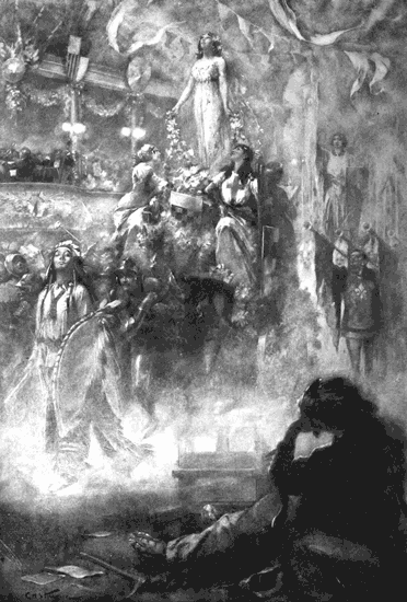 After the duke’s words of welcome, the heroic maiden was to pass beneath an archway of these swords crossed above her, like Maria Theresa between her Magyars; and, as she issued from beneath their deadly glitter, joyous hymns would break forth, and little children strew flowers before her as a symbol of days of happiness after days of battle. Then would begin the triumphal march toward the Hall of the Throne.