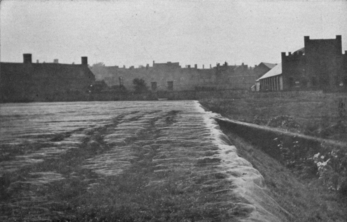 An exceptionally smooth formation due to perfect weather conditions. The wall-like formation of these tidal waves (see next page also) will be noticed. The reason for this is that the downward current in the river heads the sea-water back, and thus helps to exaggerate the advancing slope of the wave. The exceptional spring tides are caused by the combined operation of the moon and the sun, as is explained in the text.