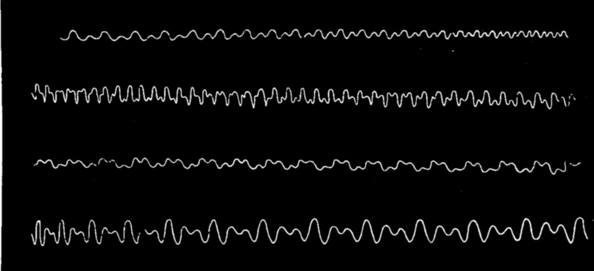 Wave-motions are often complex. The above illustration shows some fairly complicated wave shapes. All such wave-motions can be produced by superposing a number of simple wave forms.