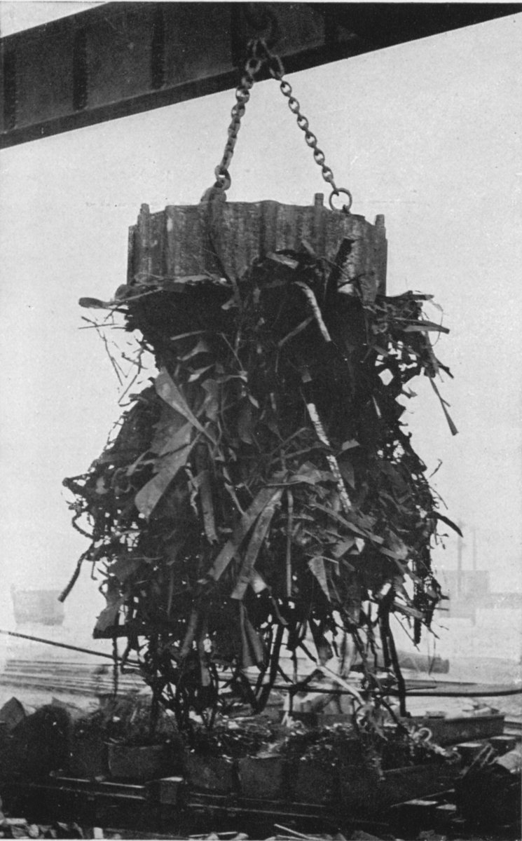 The illustration is that of a "Phœnix" electric magnet lifting scrap from railway trucks. The magnet is 52 inches in diameter and lifts a weight of 26 tons. The same type of magnet, 62 inches in diameter, lifts a weight of 40 tons.