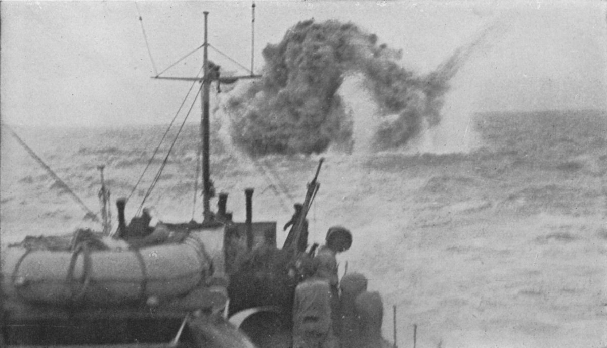 An illustration of Energy. The chemical energy brought into existence by firing the explosive manifesting itself as mechanical energy, sufficient to impart violent motion to tons of water.