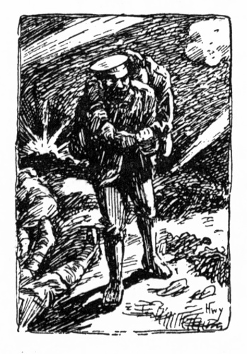 Dead and dying men were lying about in all directions—giving evidence [pg 43] of recent heavy fighting. When Henare realized this, he forgot his own danger and set to work carrying wounded men—British and German—to the shelter of a crater.