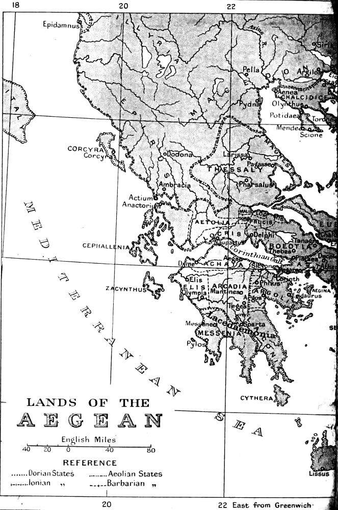 It is by another title that the writer of a book like this makes his appeal to the general reading public. He must feel such a love of Greece and of things Hellenic that he is led by it into missionary enthusiasm. The Greek language has now, probably for ever, lost its place in the curriculum of secondary education for the greater part of our people. Whether this is to be deplored is beyond the question; it is, at any rate, inevitable. But there has always been a genuinely cultivated public to whom Greek was unknown, and it is undoubtedly very much larger in this generation. To them, though Greek is unknown Greece need not be wholly sealed. But their point of view will be different from that of the professional philologist. They will not care for the details of the siege of Platæa merely because Thucydides described it; they will be much less likely to overrate the importance of that narrow strip of time which scholars select out of Greek history as the “classical period.” Greek art will make the strongest appeal to them, and Greek thought, so far as it can be communicated by description. They will be interested in social life and private antiquities rather than in diplomatic intrigues and constitutional subtleties. My object is to present a general and vivid picture of ancient Greek culture. I recognise that the brush and camera will tell of the glory of Greece far more eloquently than I can. My text is intended to explain the pictures by showing the sort of{ix} people and the state of mind that produced them. Some history, some politics, some religion and philosophy must be included for that purpose. The result will be a history of Greece with statues and poems taking the place of wars and treaties.