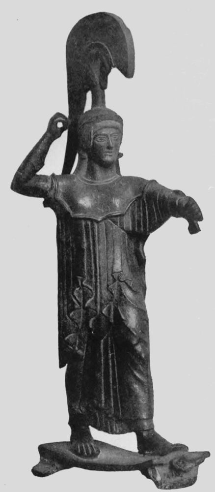 | Collotype plate, from the electrotypes in the British Museum, as Plate 9. They show the dress and weapons of Ægean folk. All but the blade is a restoration. See p. 30 | ||