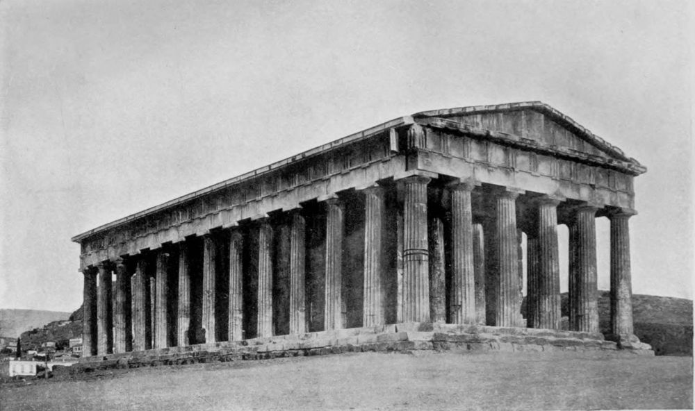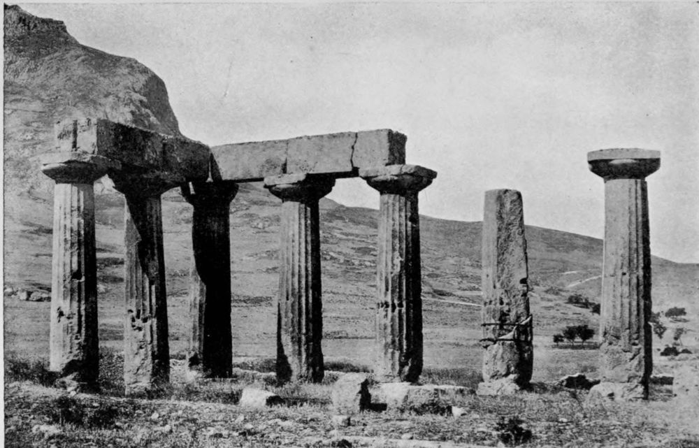 | From a photograph by the English Photo Co., Athens. In the foreground are the columns of the oldest temple in Greece | ||