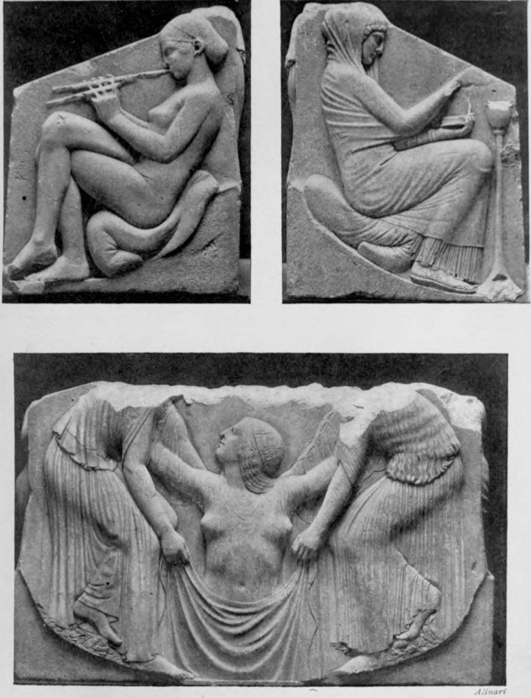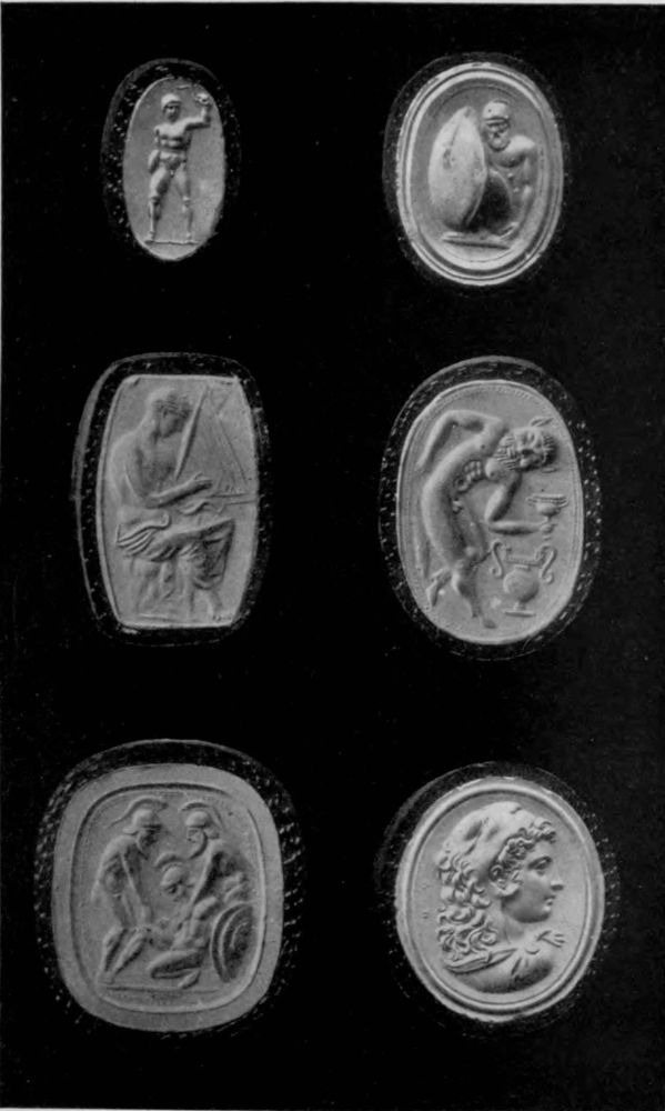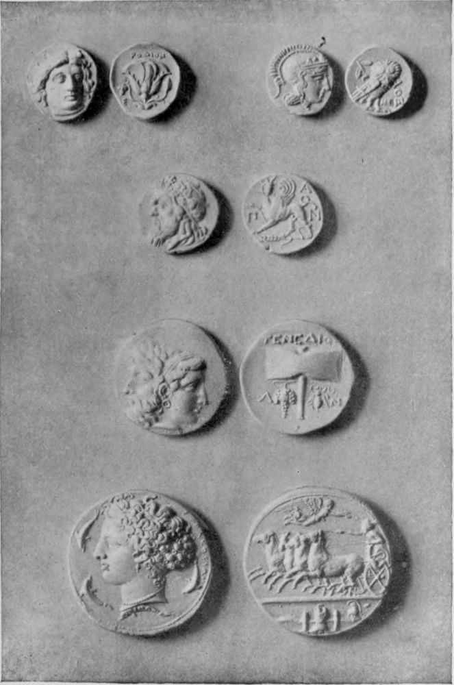 This volume is fortunate in the moment of its appearance, for it is now possible for the first time to illustrate the prehistoric culture of Greece in a worthy manner, and to attempt, at any rate, to link it up historically with the classical periods. Both the Ashmolean Museum at Oxford, and the British Museum have recently added to their collections magnificent and faithful models of the artistic treasures of Crete and Mycenæ. These I have been allowed to reproduce in colour (Plates 5 and 7) by kind permission of Sir A. J. Evans. I must also acknowledge my obligation to the Director of the Museum of Fine Arts, Boston, Mass., U.S.A., for permission to reproduce photographs of the lately discovered reliefs from the “Ludovisi Throne,” which have not as yet been adequately reproduced anywhere (Plate 32); to the Committee of the British School at Athens, through the kind offices of the Secretary, Mr. John Penoyre, for permission to use many of the illustrations of Cretan objects that have appeared in their Annual; to Mr. John Murray, for the use of the block representing the “Cupbearer Fresco” (Plate 6) and the illustration on p. 27 from Schliemann’s “Tiryns”; to the Cambridge University Press for a similar accommodation in respect of the illustration (p. 37) from Professor Ridgeway’s “Early Age of Greece”; and to M. Ernest Leroux, of Paris, for courteously permitting a reproduction to be made from a plate in MM. Reinach and Hamdy Bey’s sumptuous work, “Une Nécropole Royale à Sidon.” The authorities of the Greek and Roman and of the Coin and Medal Departments of the British Museum have also allowed many subjects to be reproduced; while I have gratefully to record the fact that the task of illustrating this book has been materially lightened by the co-operation of Messrs. W. A. Mansell & Co. I must thank Mr. Robert{x} Whitelaw and his publishers, Messrs. Longmans, for permission to quote from the former’s translation of Sophocles, and finally I must acknowledge my debt to Mr. Arnold Gomme for much assistance in the correction of the proofs of this book.