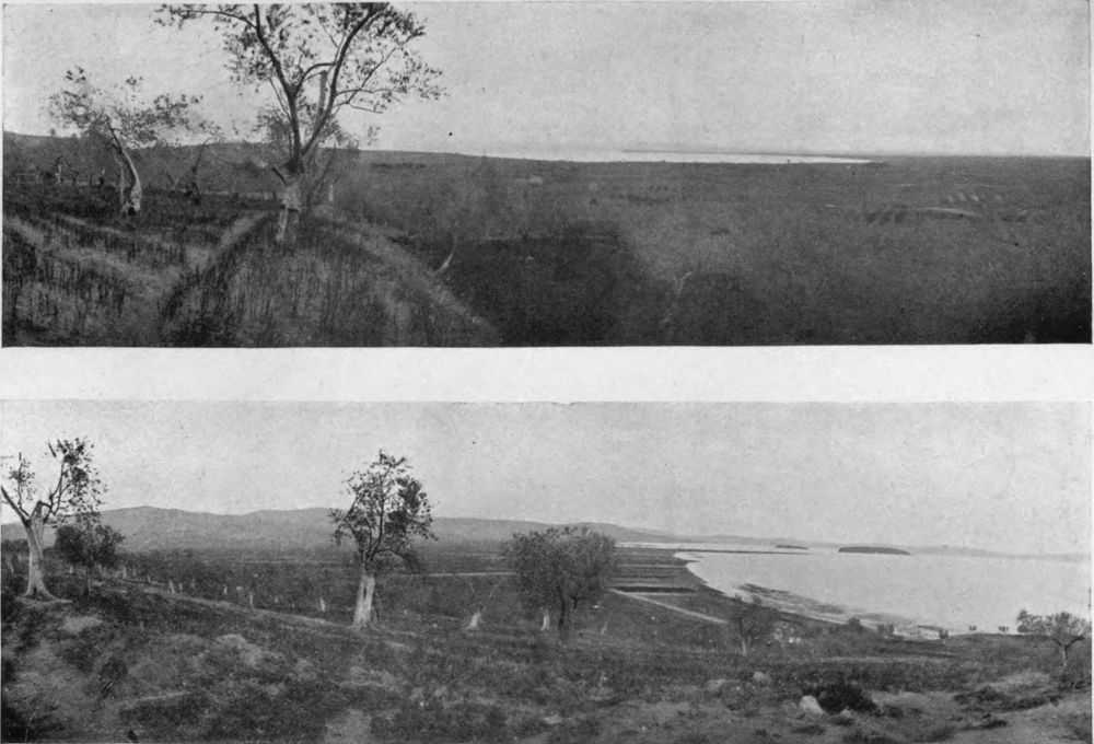 | From photographs by C.T. Carr. The scene of the famous battle of 217 B.C., in which Hannibal ambushed the Roman army on the shores of the lake | ||