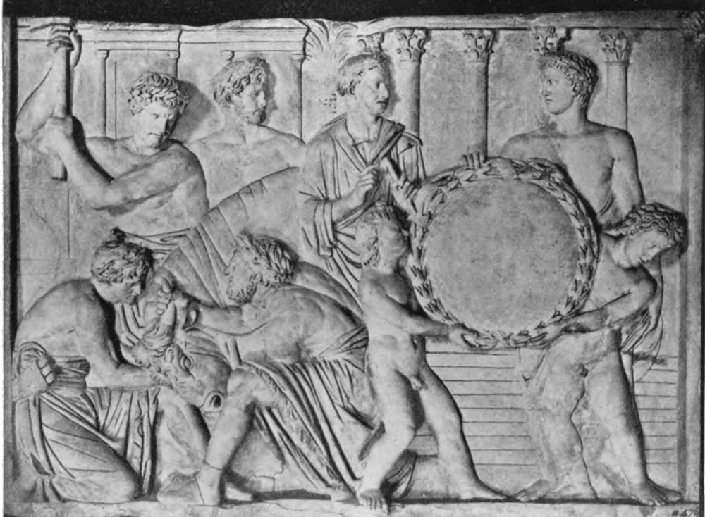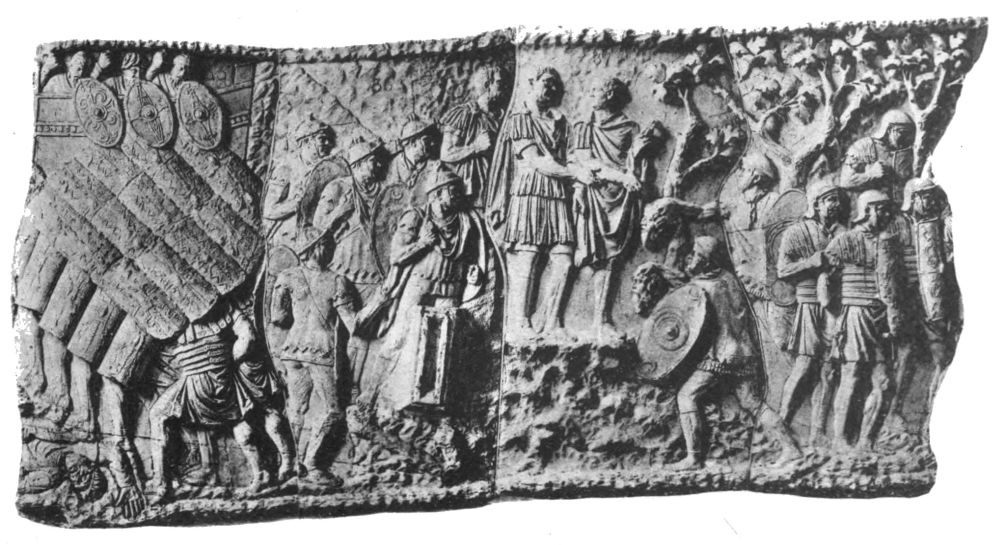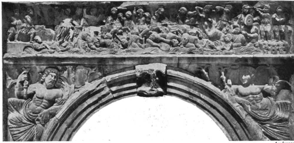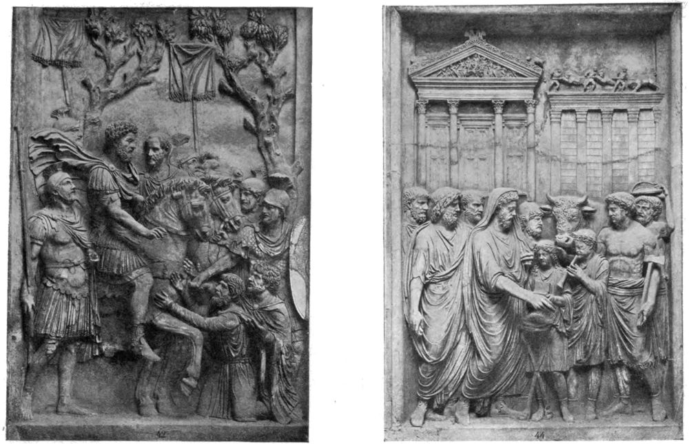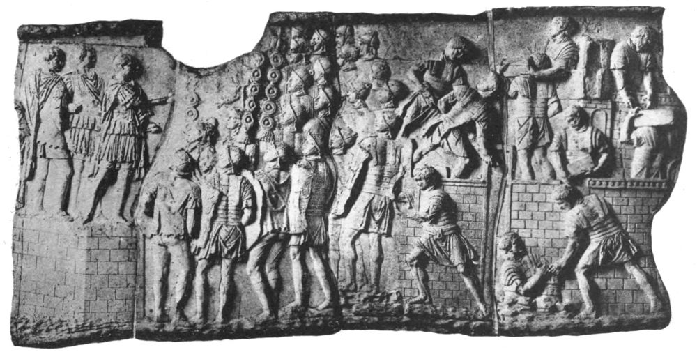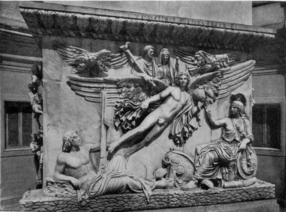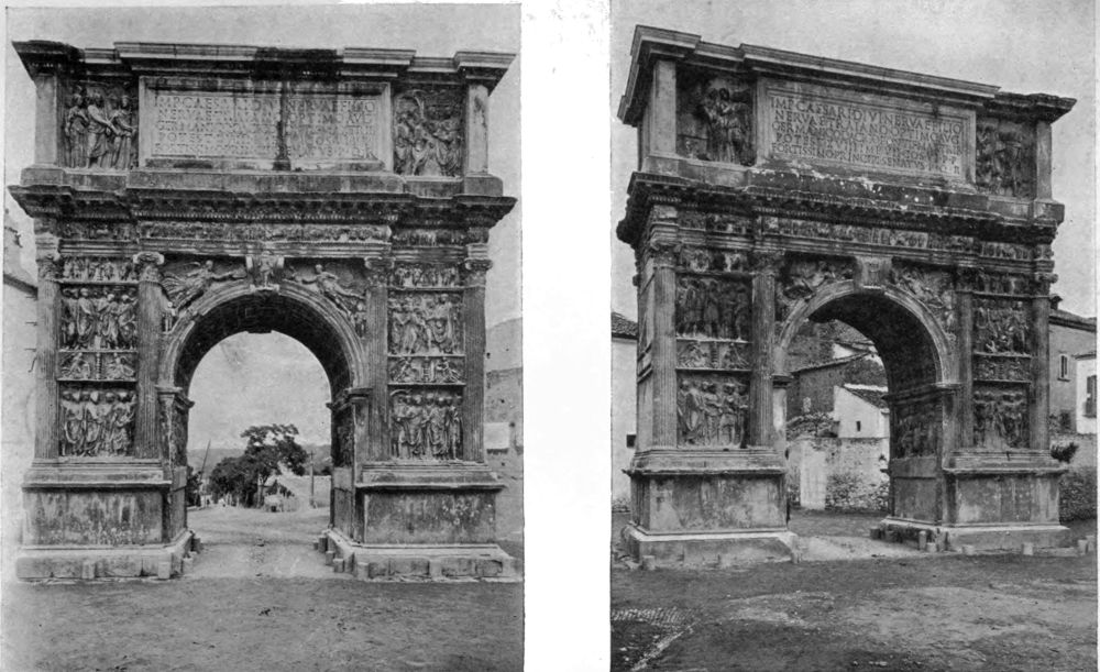 I have to acknowledge with gratitude the permission given me by the Director of the Königlichen Messbildanstalt of the Royal Museum at Berlin to reproduce four of the magnificent photographs of Dr. O. Puchstein’s discoveries at Ba’albek. I am indebted also to Herr Georg Reimer, of Berlin, for allowing me to reproduce four of the complete series of Reliefs from Trajan’s Column published by him in heliogravure under the{x} care of Professor Cichorius. The coloured plate of the interior of the House of Livia is reproduced by permission of the German Archæological Institute from Luckenbach’s Kunst und Geschichte (grosse Ausgabe, erster Teil); and from the same work I have been allowed to reproduce the reconstruction of the Roman Forum in the time of Cæsar. Professor Garstang has kindly supplied a photograph, with permission to reproduce of the bronze head of Augustus discovered by him at Meroe and recently presented to the British Museum. The Cambridge University Press has allowed me to give two pictures from Prof. Ridgeway’s Early Age of Greece; and the photograph of the Alcántara Bridge was kindly supplied by Sr. D. Miguel Utrillo, of Barcelona. The majority of photographs have been supplied by Messrs. W. A. Mansell and Co.; but for many subjects, especially of Roman remains outside Italy, I must acknowledge my indebtedness to a number of amateur photographers, who not only avoid the hackneyed point of view but also achieve a high level of technique. Sir Alexander Binnie has kindly permitted the inclusion of eight photographs and Mr. C. T. Carr of four; while I must also make acknowledgment to Miss Carr, Mr. R. C. Smith, and Miss K. P. Blair.