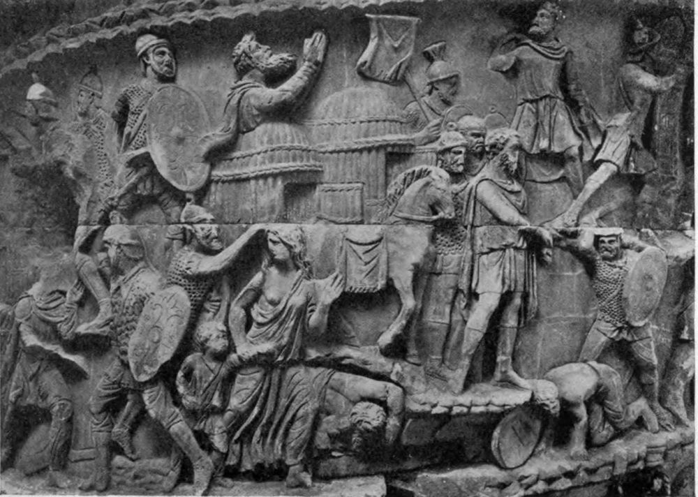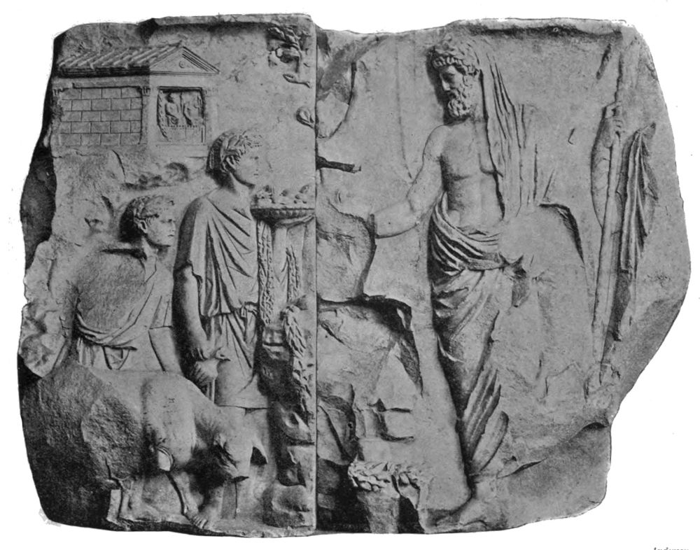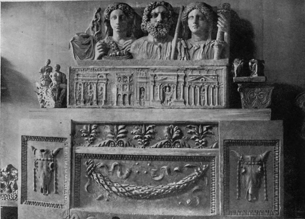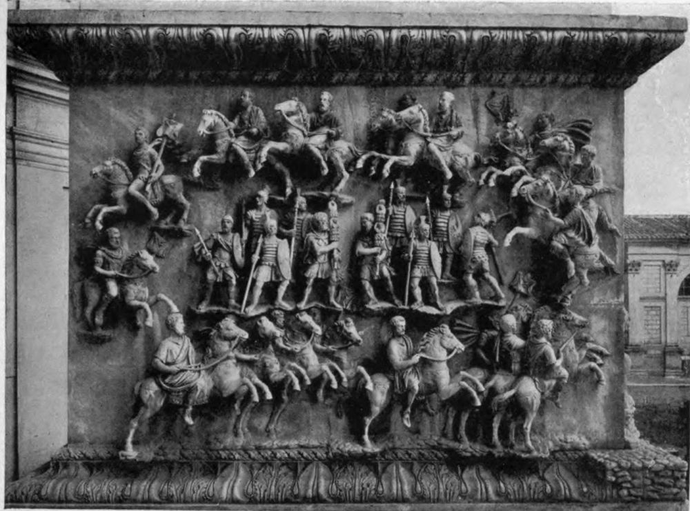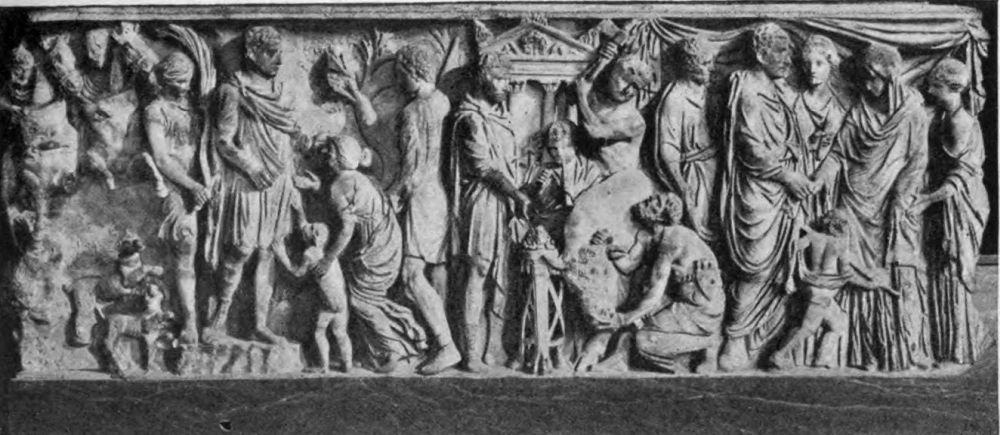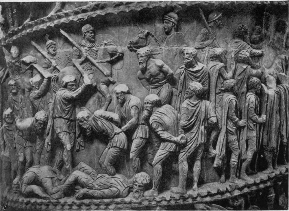 I have to acknowledge with gratitude the permission given me by the Director of the Königlichen Messbildanstalt of the Royal Museum at Berlin to reproduce four of the magnificent photographs of Dr. O. Puchstein’s discoveries at Ba’albek. I am indebted also to Herr Georg Reimer, of Berlin, for allowing me to reproduce four of the complete series of Reliefs from Trajan’s Column published by him in heliogravure under the{x} care of Professor Cichorius. The coloured plate of the interior of the House of Livia is reproduced by permission of the German Archæological Institute from Luckenbach’s Kunst und Geschichte (grosse Ausgabe, erster Teil); and from the same work I have been allowed to reproduce the reconstruction of the Roman Forum in the time of Cæsar. Professor Garstang has kindly supplied a photograph, with permission to reproduce of the bronze head of Augustus discovered by him at Meroe and recently presented to the British Museum. The Cambridge University Press has allowed me to give two pictures from Prof. Ridgeway’s Early Age of Greece; and the photograph of the Alcántara Bridge was kindly supplied by Sr. D. Miguel Utrillo, of Barcelona. The majority of photographs have been supplied by Messrs. W. A. Mansell and Co.; but for many subjects, especially of Roman remains outside Italy, I must acknowledge my indebtedness to a number of amateur photographers, who not only avoid the hackneyed point of view but also achieve a high level of technique. Sir Alexander Binnie has kindly permitted the inclusion of eight photographs and Mr. C. T. Carr of four; while I must also make acknowledgment to Miss Carr, Mr. R. C. Smith, and Miss K. P. Blair.